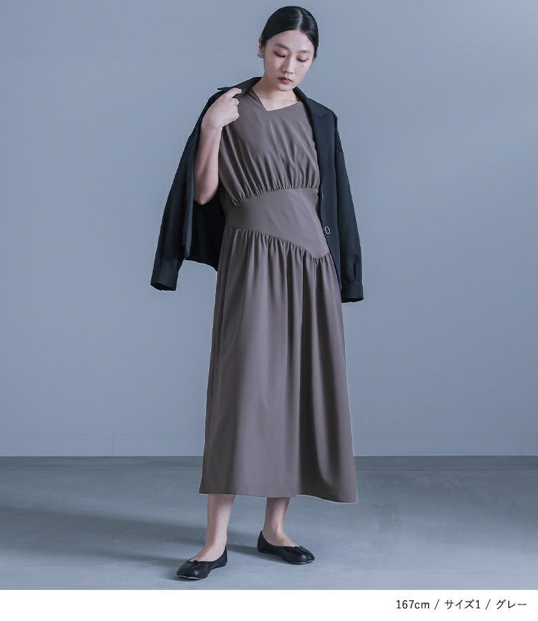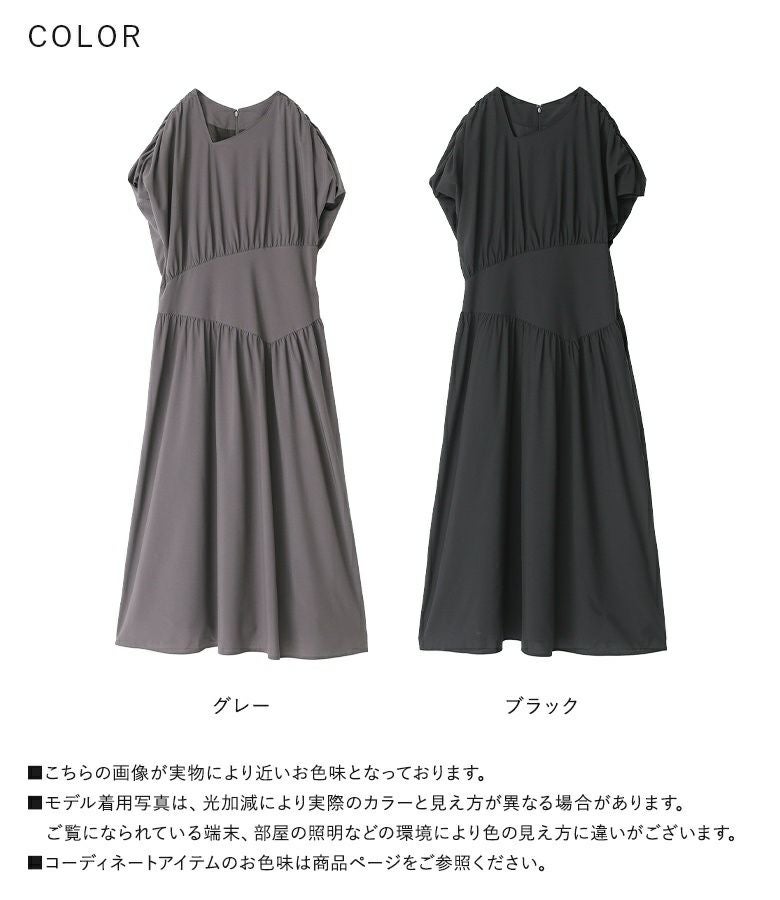 【普段着用】 Tops: L/LL Bottoms: L/LL | 【1】 袖丈:二の腕真ん中位 着丈:ふくらはぎが隠れる位 腕周り:ジャスト バスト:少しタイト ウエスト:ジャスト ヒップ:ゆったり 全体:スッキリ