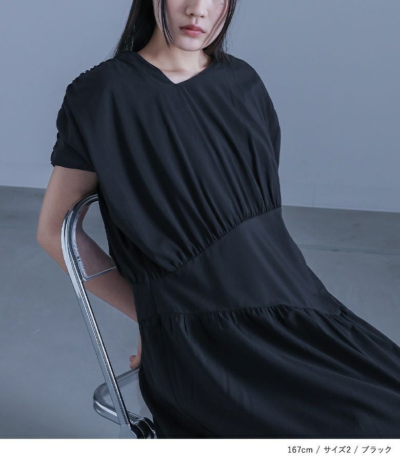 【2】 袖丈:二の腕真ん中位 着丈:くるぶしが見える位 腕周り:ややゆったり バスト:ややゆったり ウエスト:ややゆったり ヒップ:ゆったり 全体:ゆったり