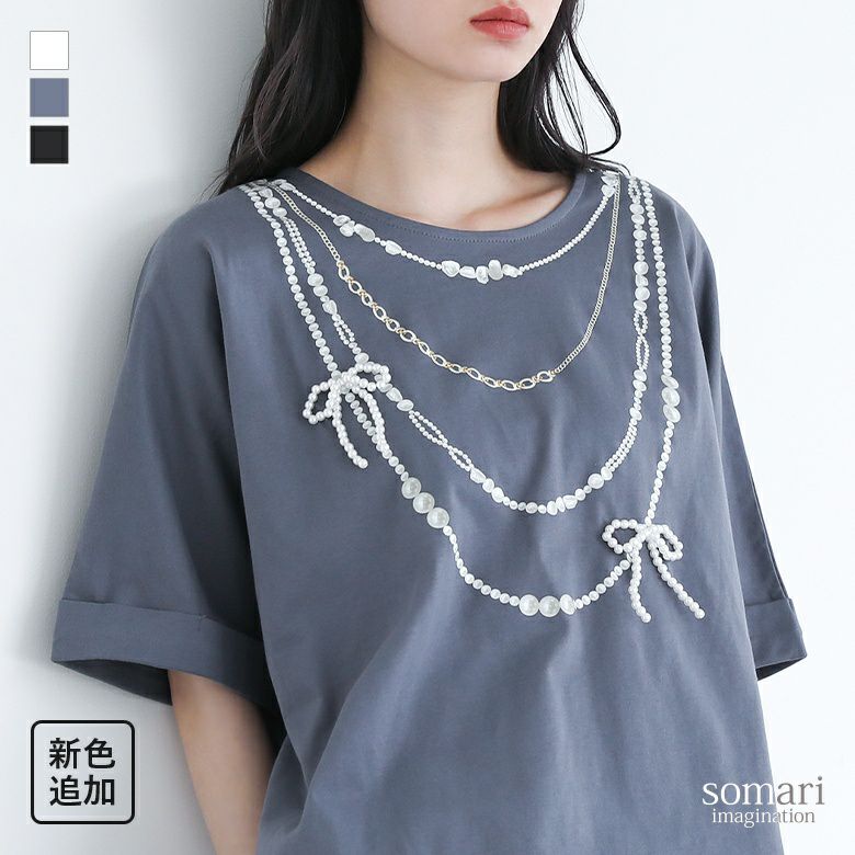 【新色登場】『somari imaginationフェイクパールリボンTシャツ』