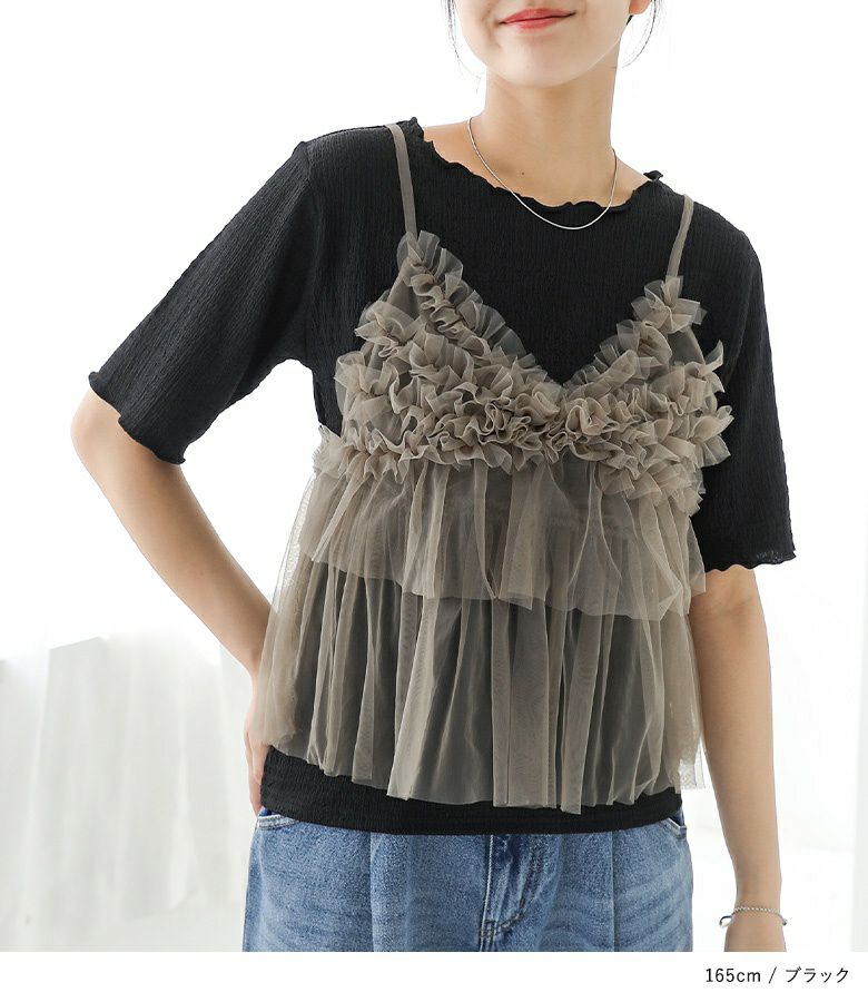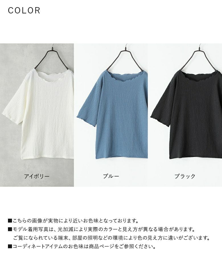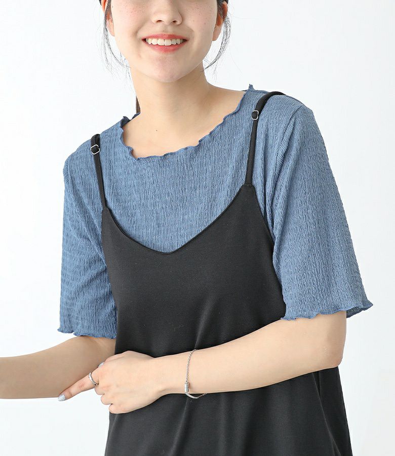 大人が着やすいぽこぽことした凹凸感がポイントのシャーリングトップス。