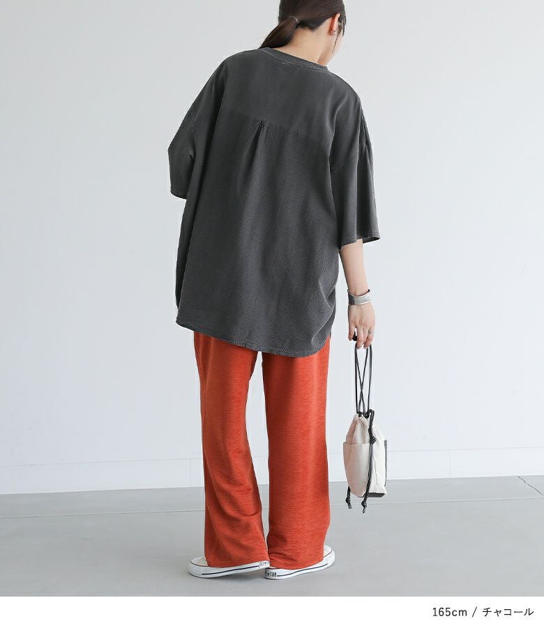 シンプルなボトムスと合わせるだけでオシャレ印象なスタイルが完成。ゆるっとしたシルエットで程よい丈感なのでボトムスのシルエットは問わず着用いただけます。