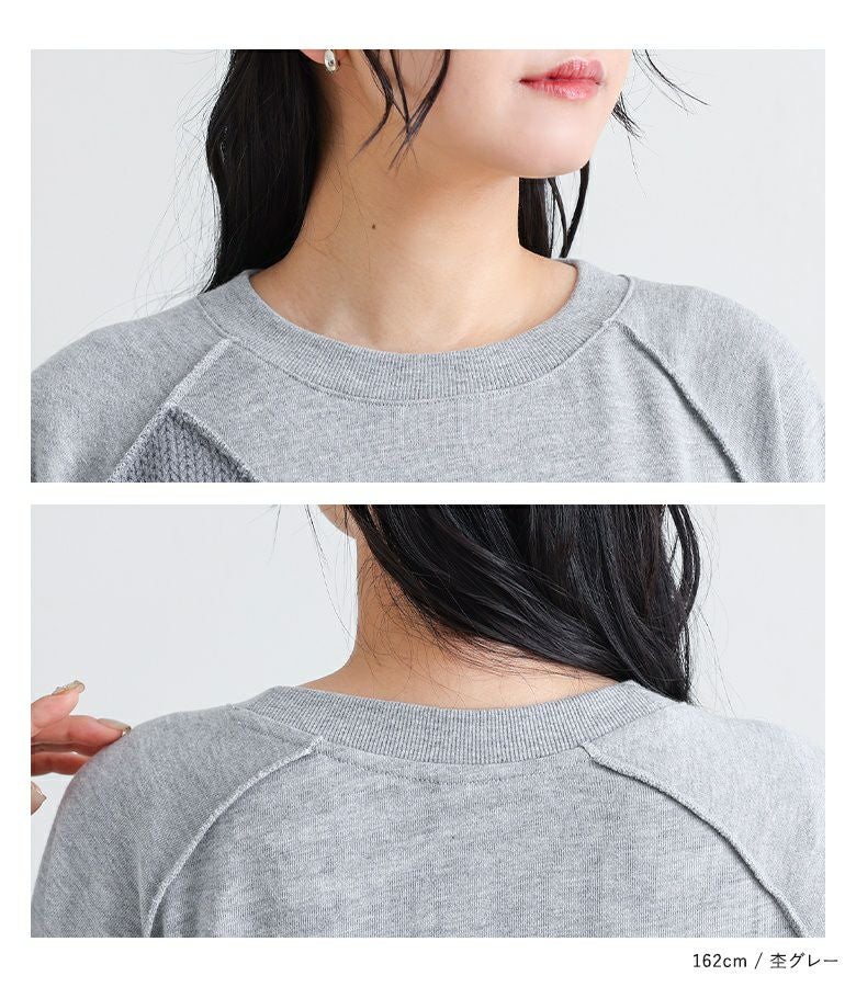 程よい厚みの裏毛カットソーと、ニットを組み合わせ。快適な着心地とおしゃれな表情を両立した、季節の変わり目にも活躍する素材感です。
