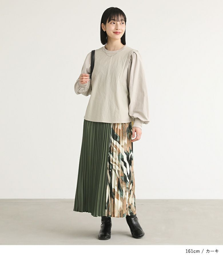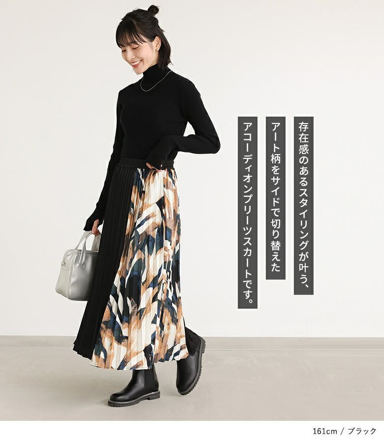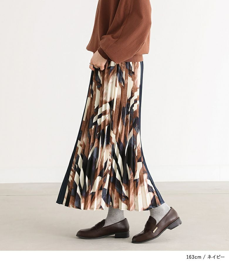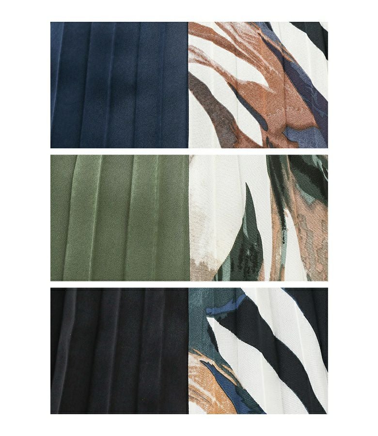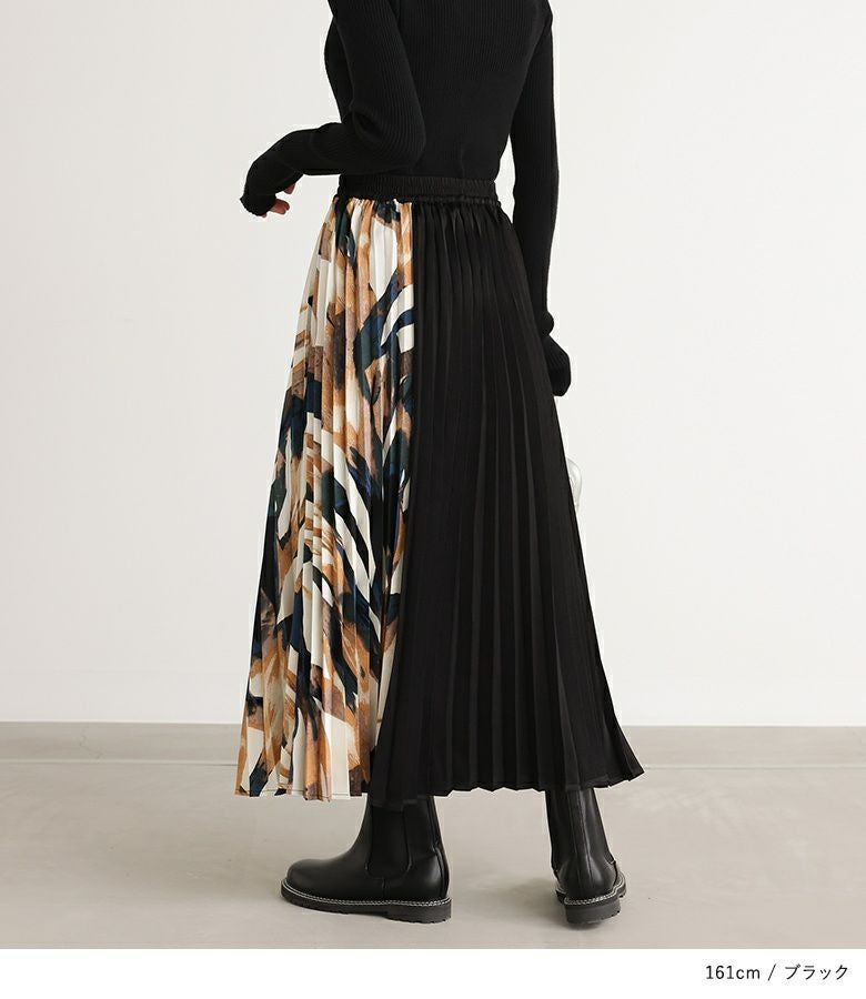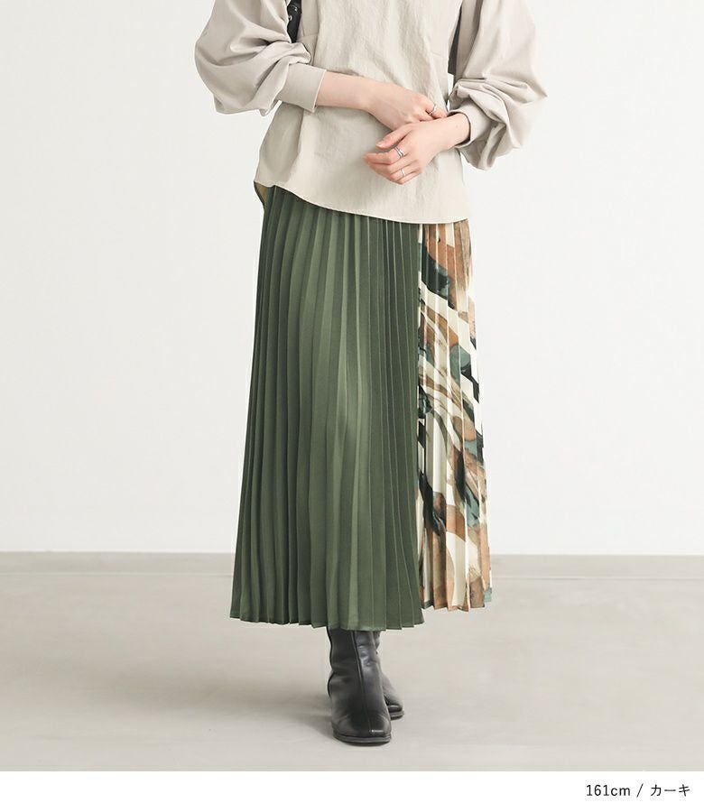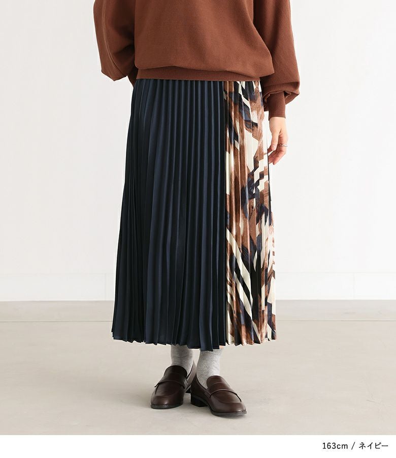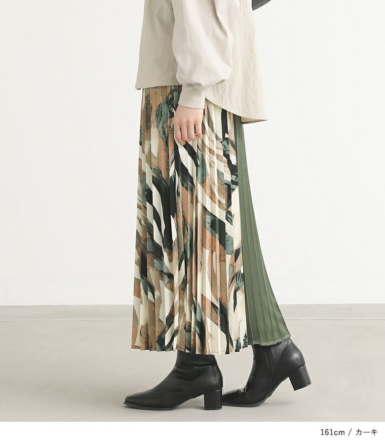 サイドを柄で切り替えたアコーディオンプリーツスカート。