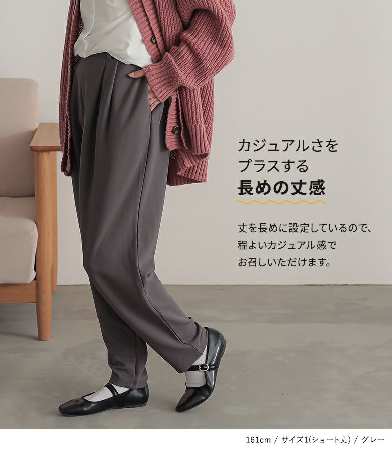 ショート丈はすっきりとキレイめな印象で着用できました。レギュラー丈は着丈が少し長いのでヒール合わせなどで調節して穿きたいです。