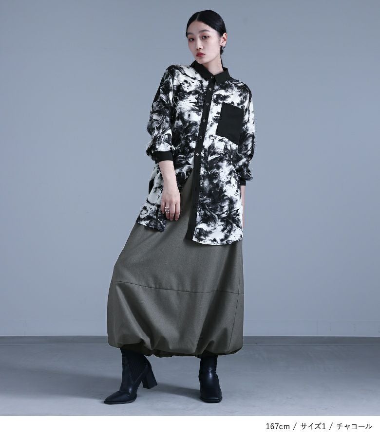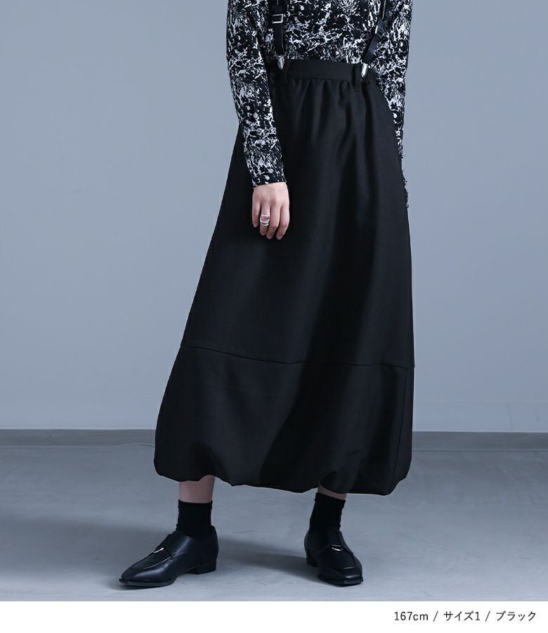 【普段着用】 Tops: M Bottoms: S/M | 【1】 着丈(ウエスト穿き):くるぶしが隠れる位 ウエスト:ゆったり ヒップ:ゆったり 太もも周り:ゆったり 全体:ゆったり