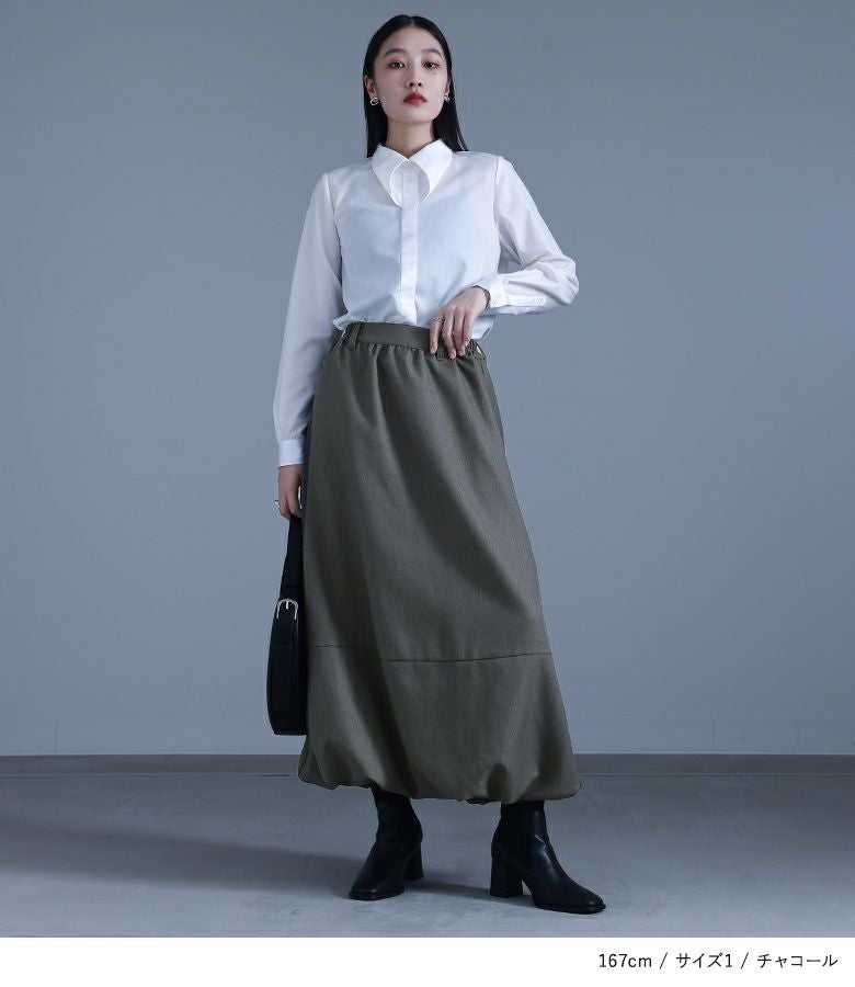 【普段着用】 Tops: L Bottoms: L | 【1】 着丈(ウエスト穿き):くるぶしが隠れる位 ウエスト:ややゆったり ヒップ:ゆったり 太もも周り:ゆったり 全体:ゆったり
