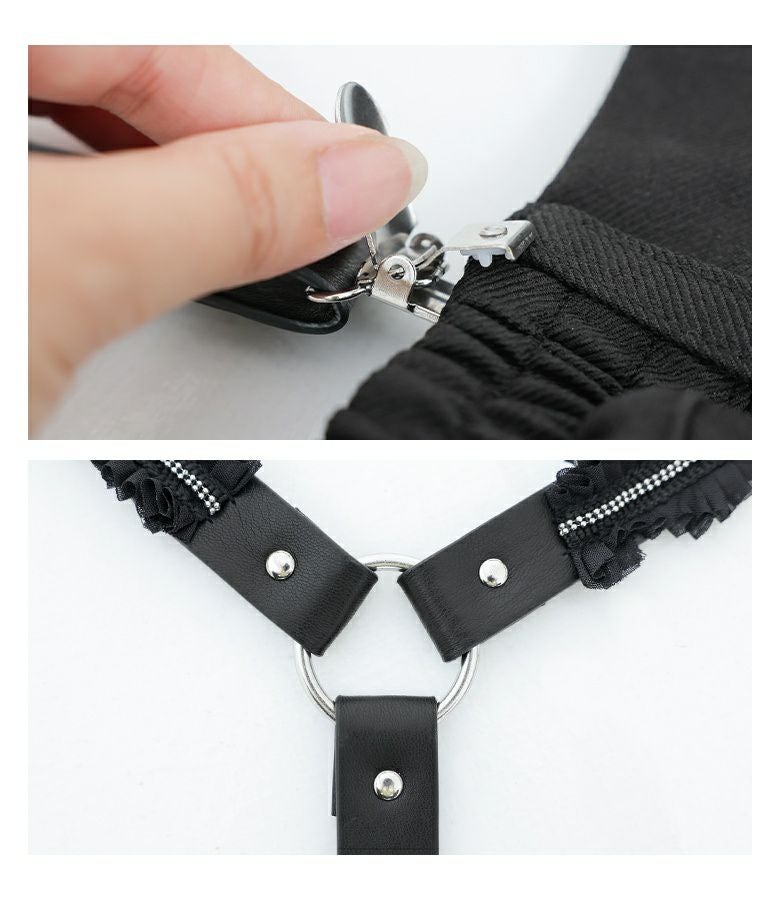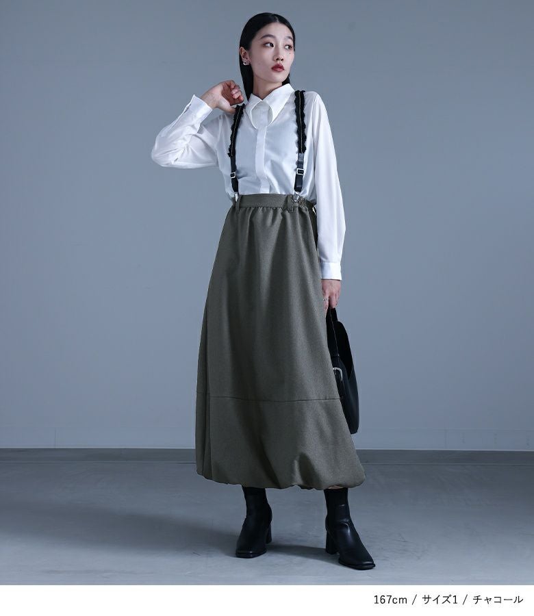 アジャスターは1番短い位置で着用。サスペンダーでスカートの位置が固定できて便利です。