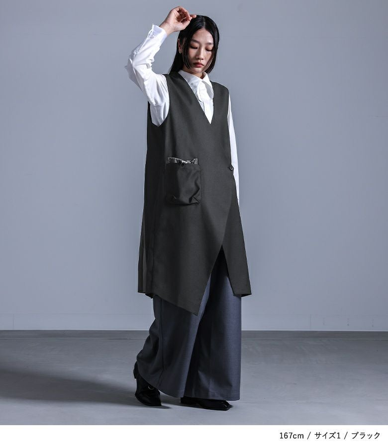【普段着用】 Tops: M Bottoms: M/L | 【1】 着丈:ひざ下 腕周り:ゆったり バスト:ゆったり 全体:スッキリ