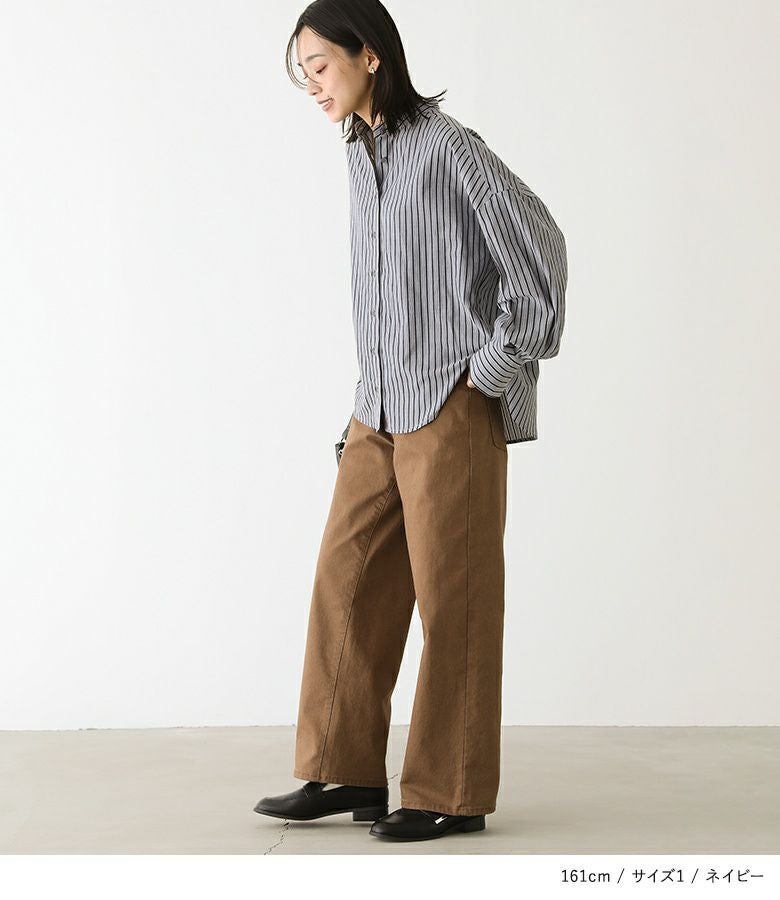 【普段着用】 Tops: L/LL Bottoms: L/LL | 【1】 袖丈:手の甲真ん中位 着丈:ヒップ下少し見える位 腕周り:ややゆったり バスト:ややゆったり 全体:スッキリ