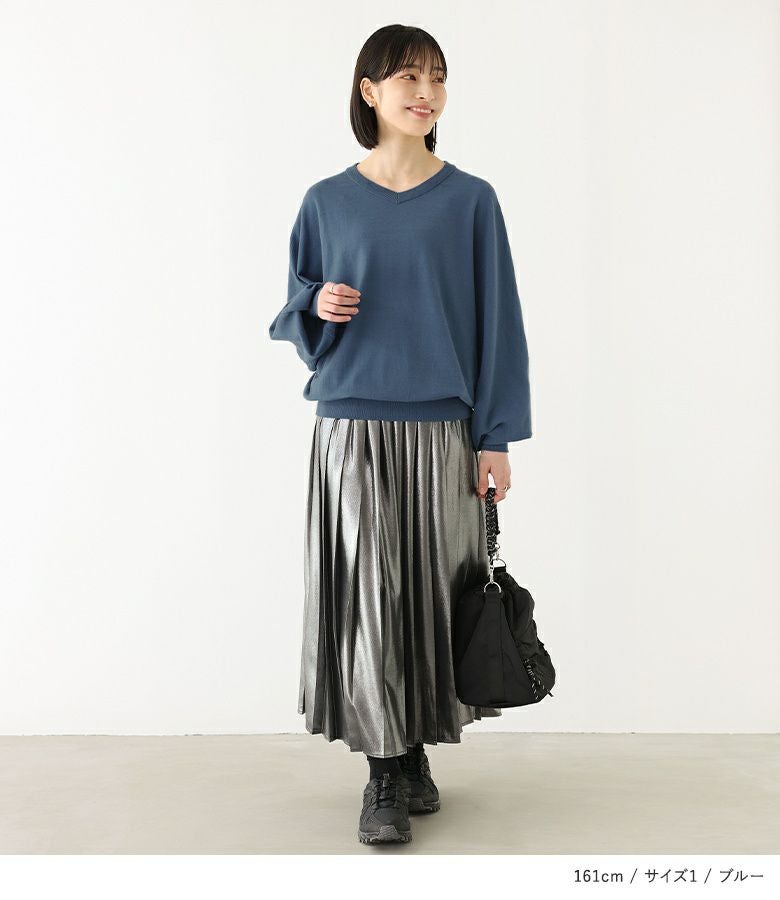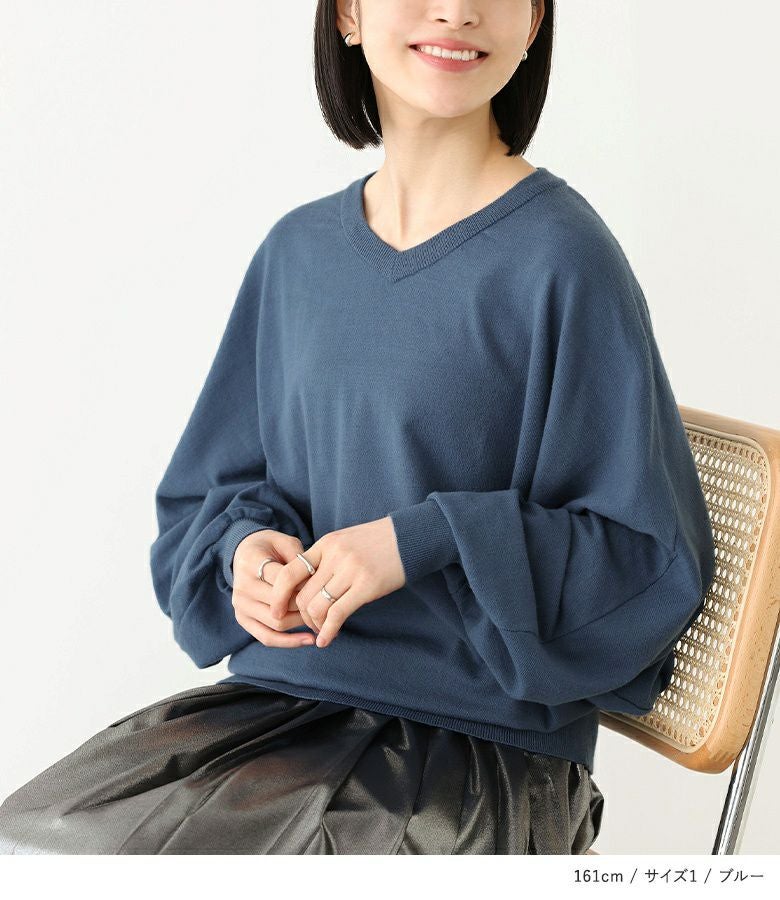 機能性の糸を使用したドルマンニット。ゆるっとしたシルエットで、身体のラインを拾わずこなれ感ある着こなしに。Vネックですっきりと見えるデザインです。長めのリブ仕様でシンプルながらメリハリのある一枚。