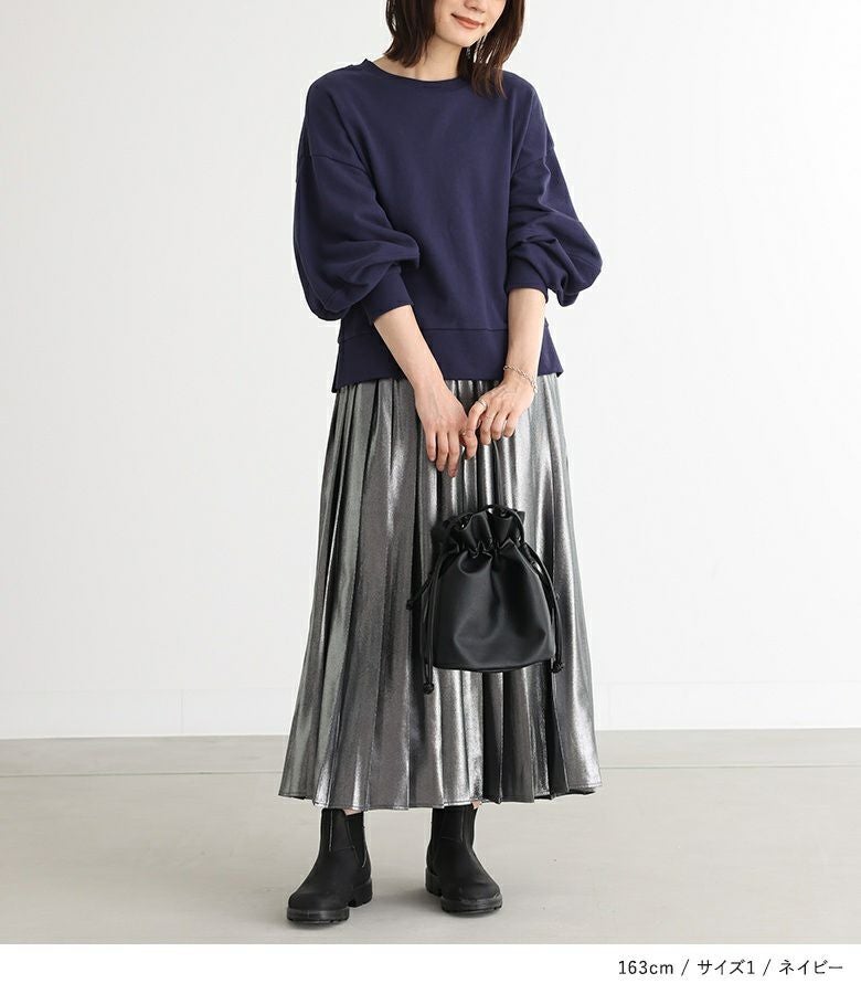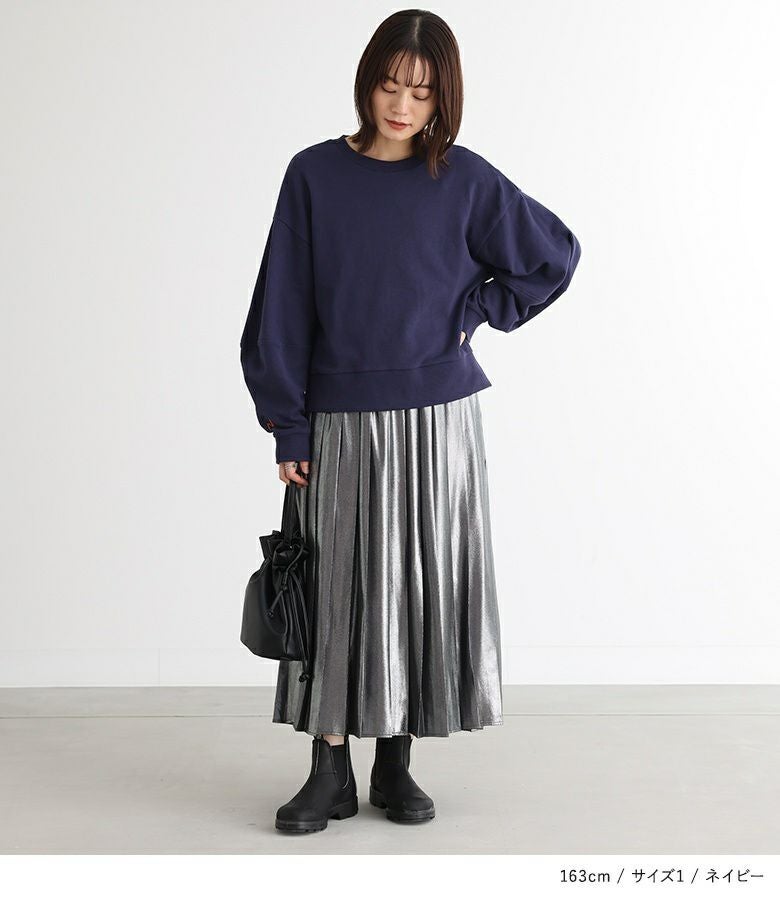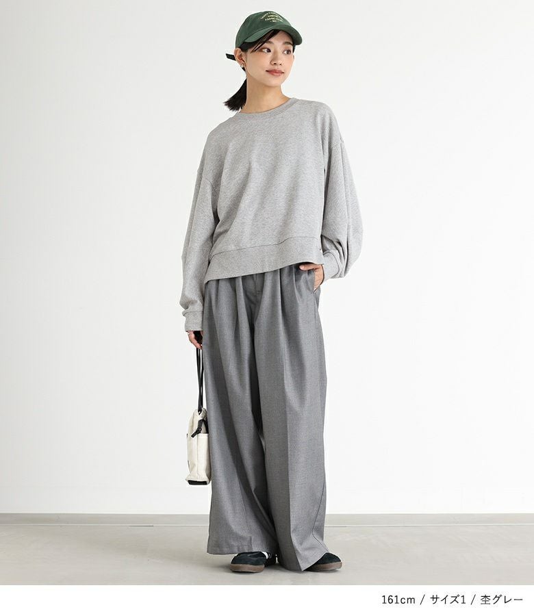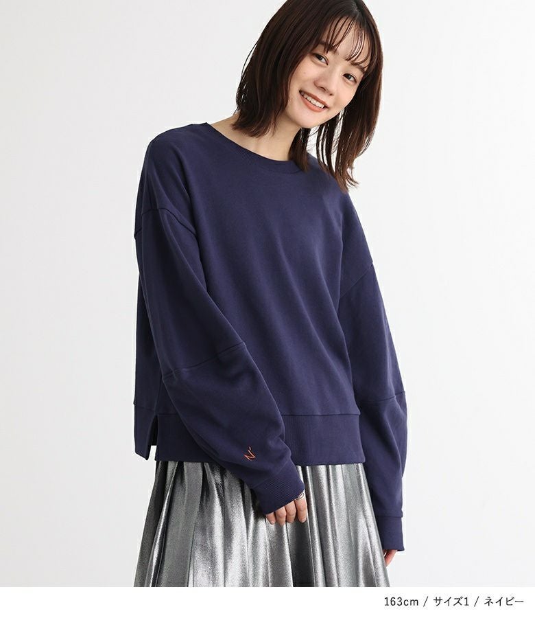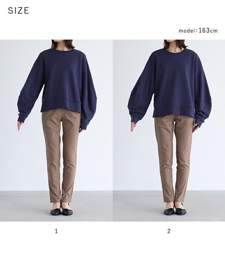 【普段着用】 Tops: M Bottoms: S/M | 【1】 袖丈:手の甲が隠れる位 着丈:ヒップ上10cm位 腕周り:ややゆったり バスト:ややゆったり 全体:ややゆったり