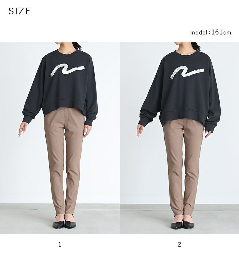 【普段着用】 Tops: L Bottoms: L | 【1】 袖丈:手首位 着丈:ヒップにかかる位 腕周り:ややゆったり バスト:ややゆったり 全体:ややゆったり
