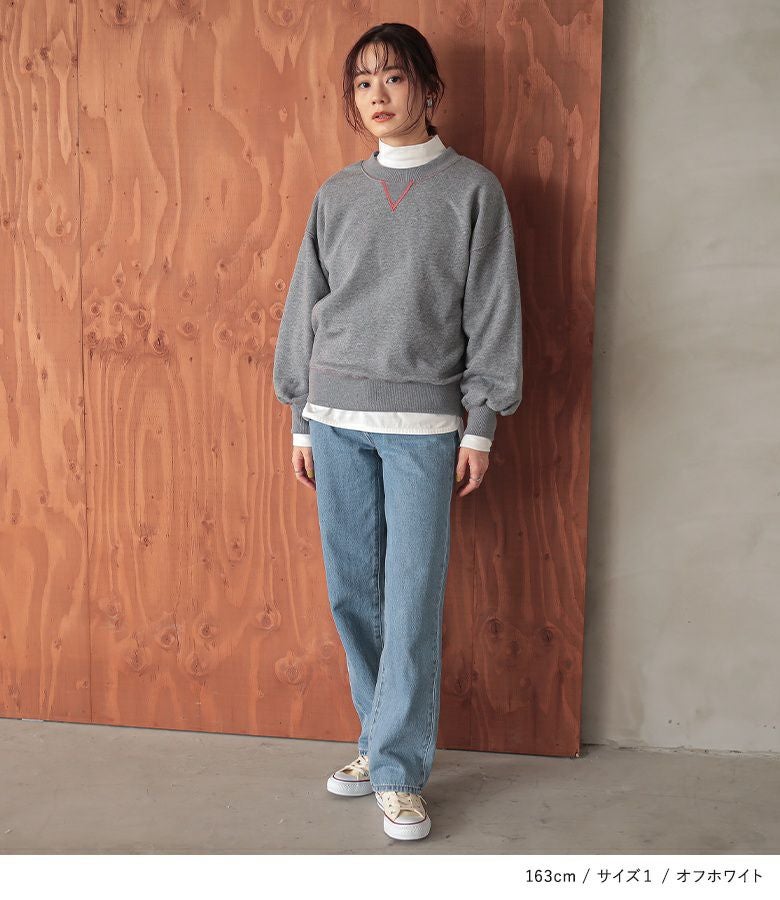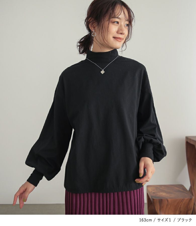 【普段着用】 Tops: M Bottoms: M/L | 【1】 袖丈:手首位 着丈:ヒップ真ん中位 腕周り:ゆったり バスト:ゆったり 全体:ゆったり