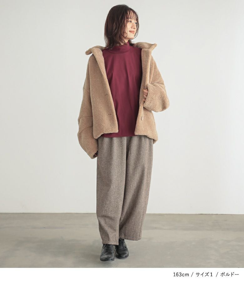 【2】 袖丈:手首位 着丈:ヒップ下少し見える位 腕周り:ゆったり バスト:ゆったり 全体:ゆったり