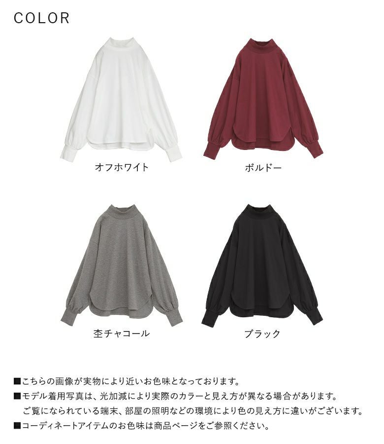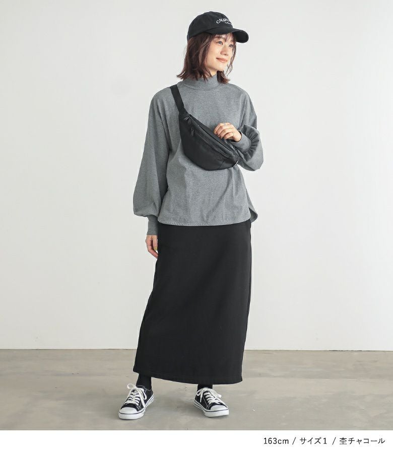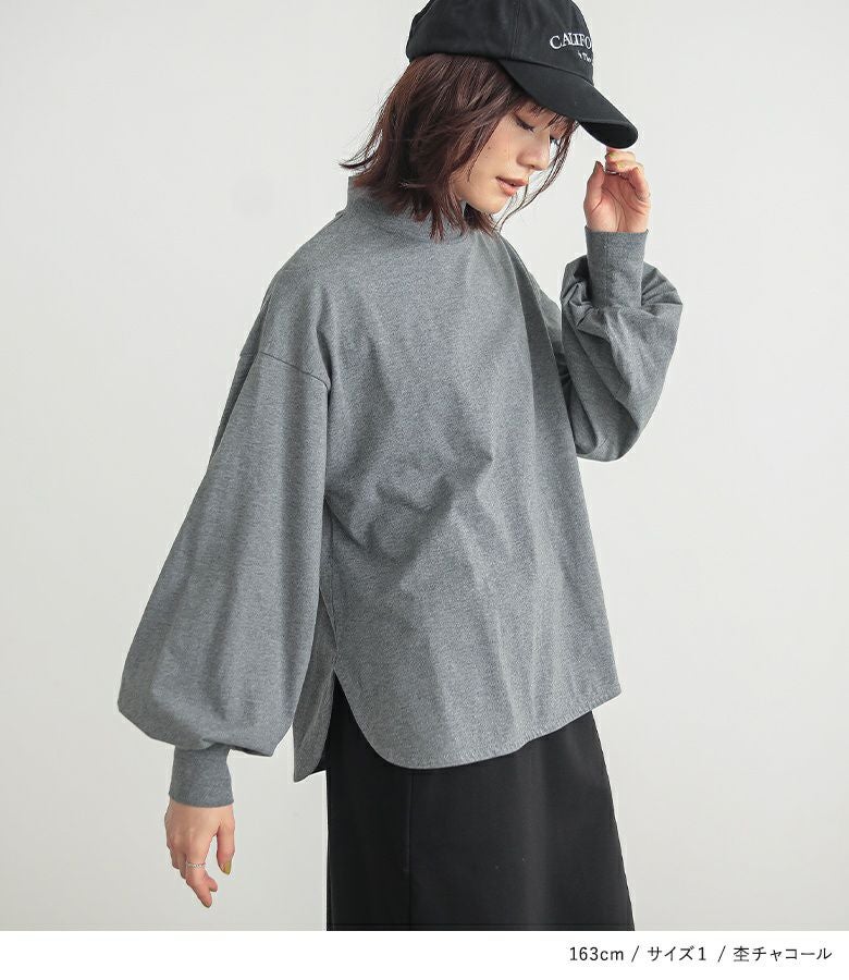 【普段着用】 Tops: L Bottoms: L | 【1】 袖丈:手の甲にかかる位 着丈:ヒップにかかる位 腕周り:ややゆったり バスト:ややゆったり 全体:ややゆったり
