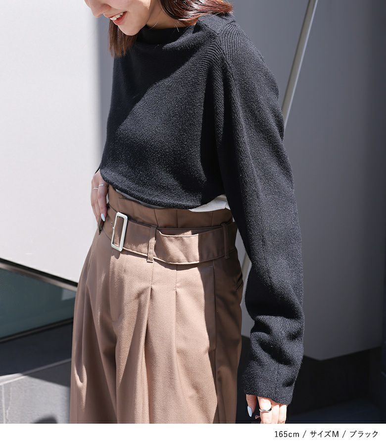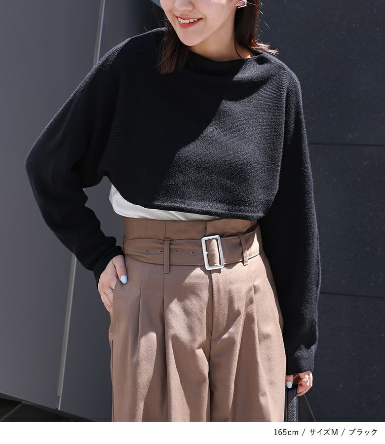 【40%OFF】片側がクロスデザインになった、前後2wayで着用できるショート丈ニット。
