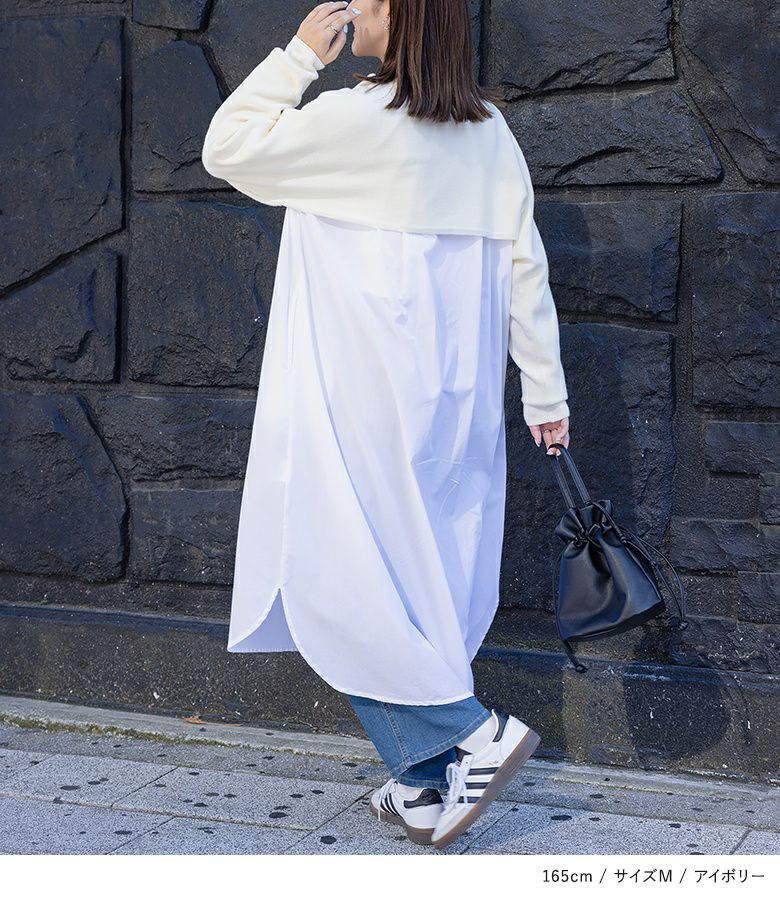 カットソーやワンピースなどと合わせてレイヤードコーデをお楽しみいただけます。また、ショート丈なのでハイウエストのパンツを合わせるとメリハリのあるシルエットでスタイルアップ効果も。