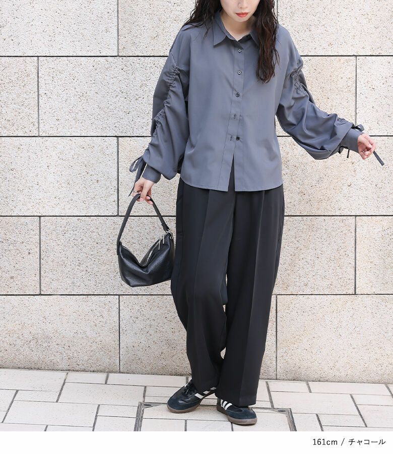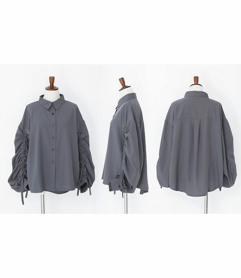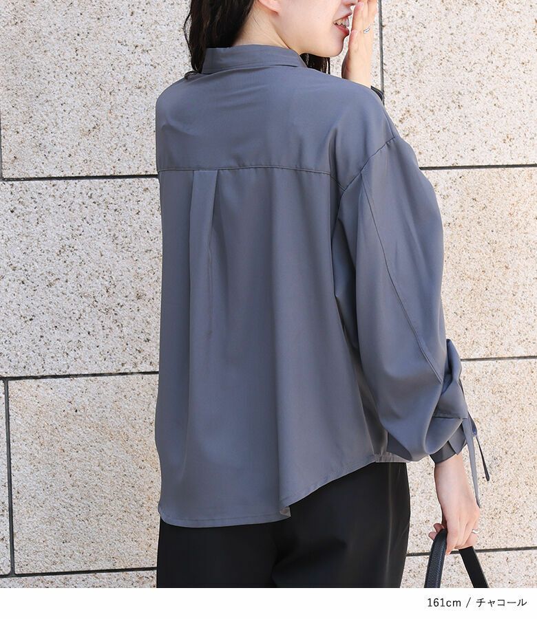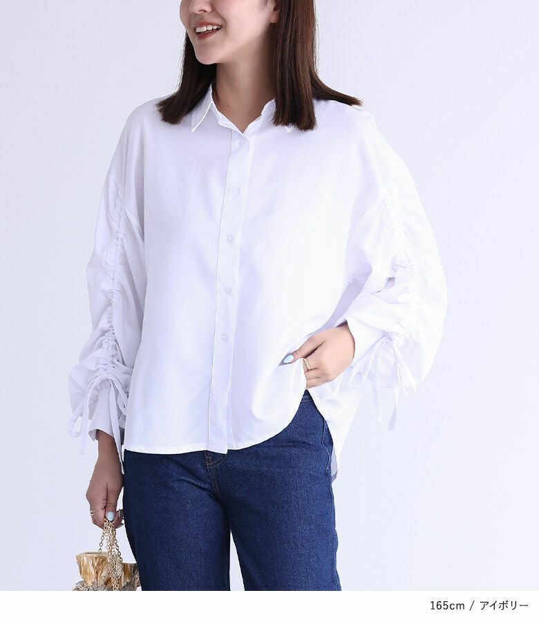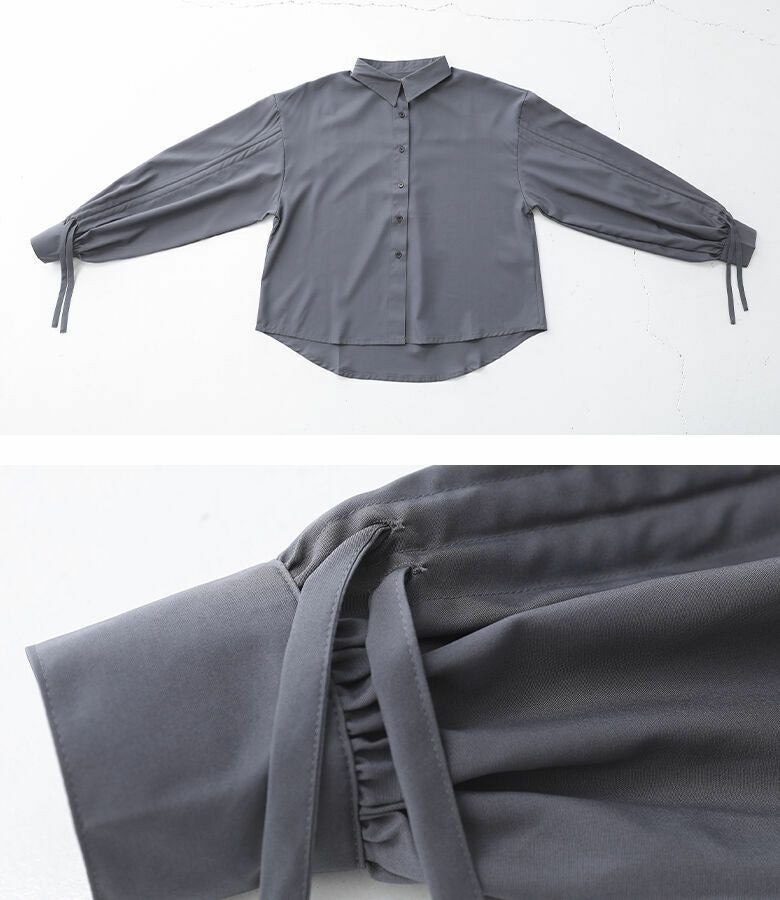 袖に存在感のあるドロストデザインが施されたシャツ。ボリュームのある袖でこなれ感をプラスする、シンプルながらも印象的なアイテムです。