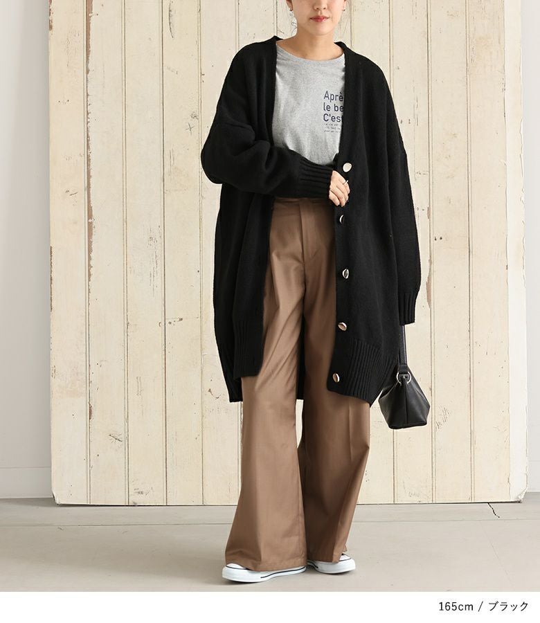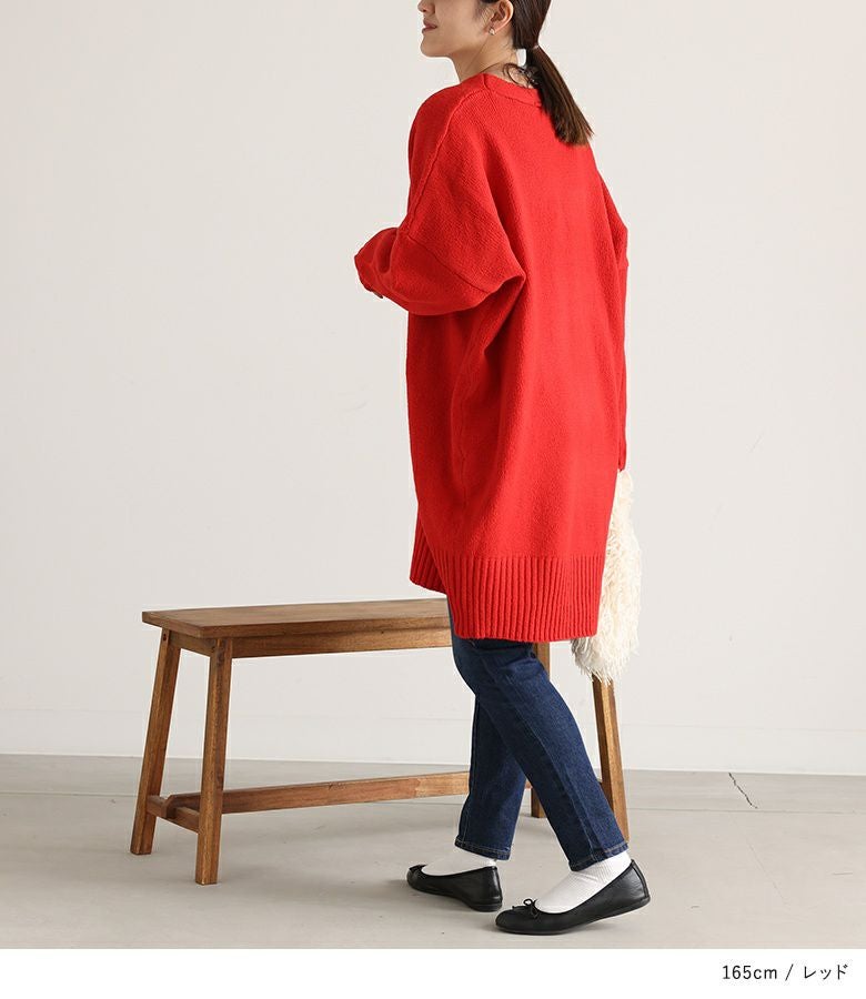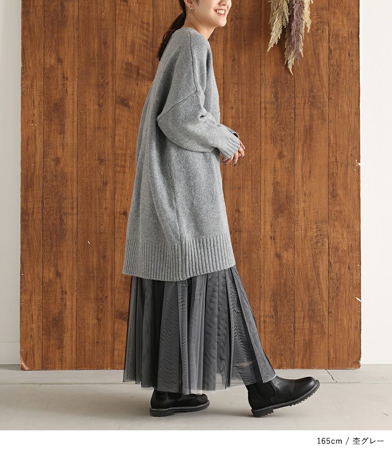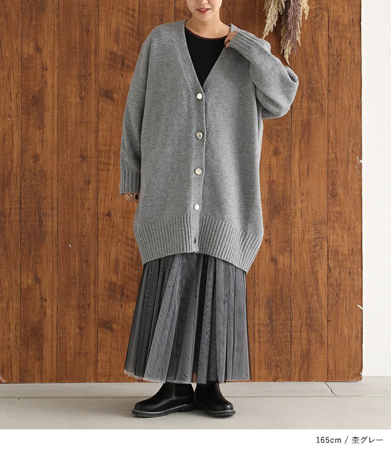 オーバーサイズで気になるヒップ回りもカバーしてくれるカーディガン。