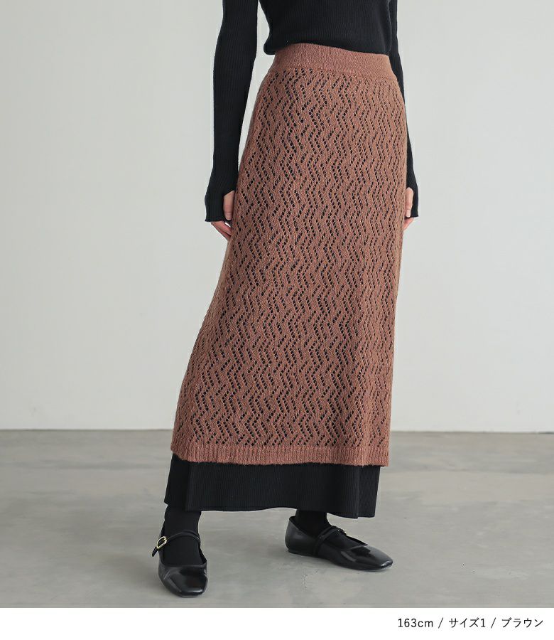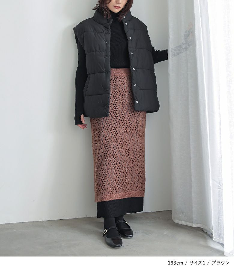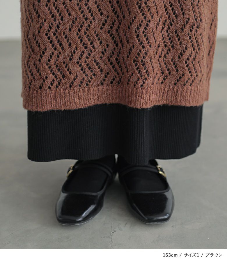 スッキリと楽に着用できました。透かし編みニットのほうはふくらはぎ隠れる位の丈感でした。