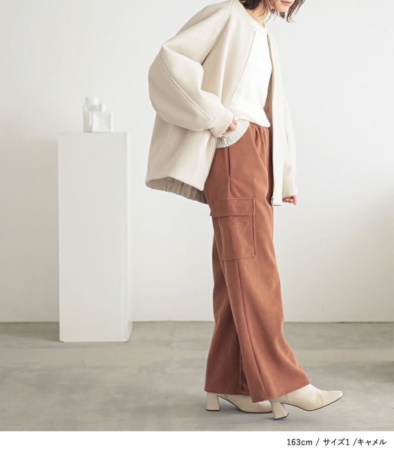 【2】 着丈(ウエスト穿き):かかとから3cm余る位 ウエスト:ゆったり ヒップ:ゆったり 太もも周り:ゆったり 全体:ゆったり