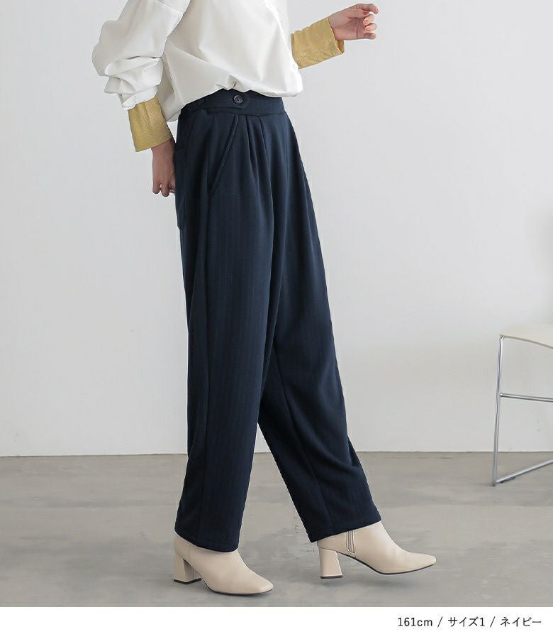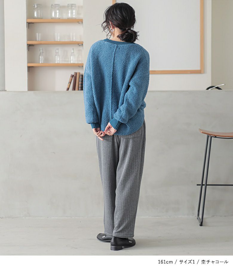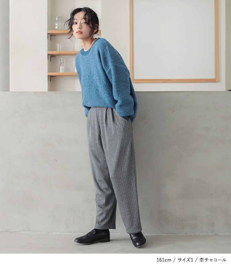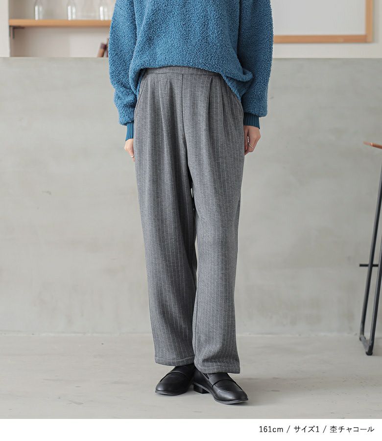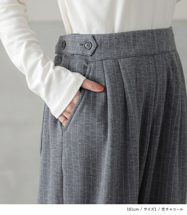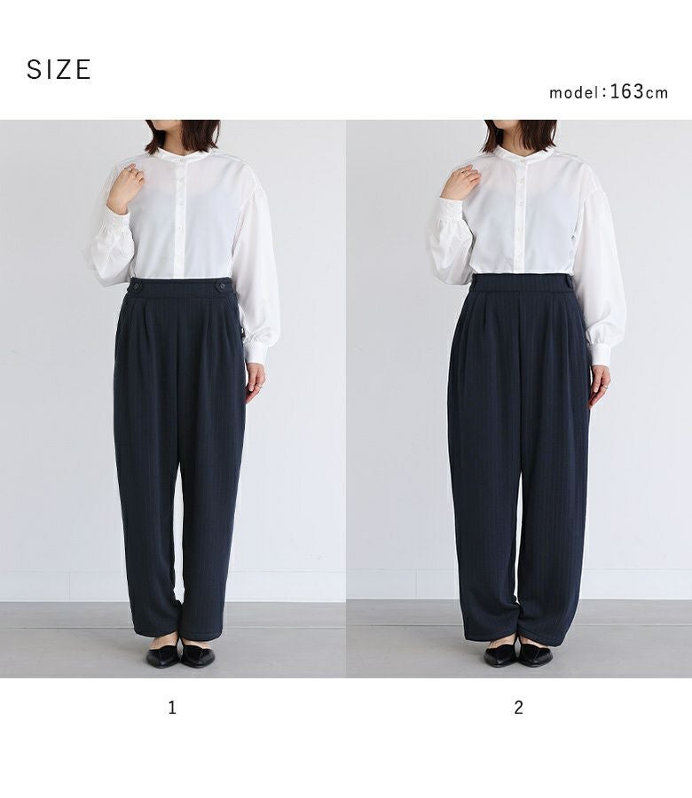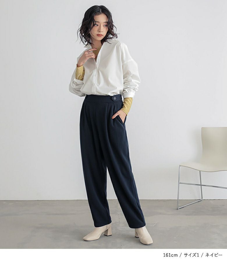【普段着用】 Tops: M Bottoms: M | 【1】 着丈(ウエスト穿き):ちょうどくるぶし位 ウエスト:ジャスト ヒップ:ゆったり 太もも周り:ややゆったり 全体:ややゆったり