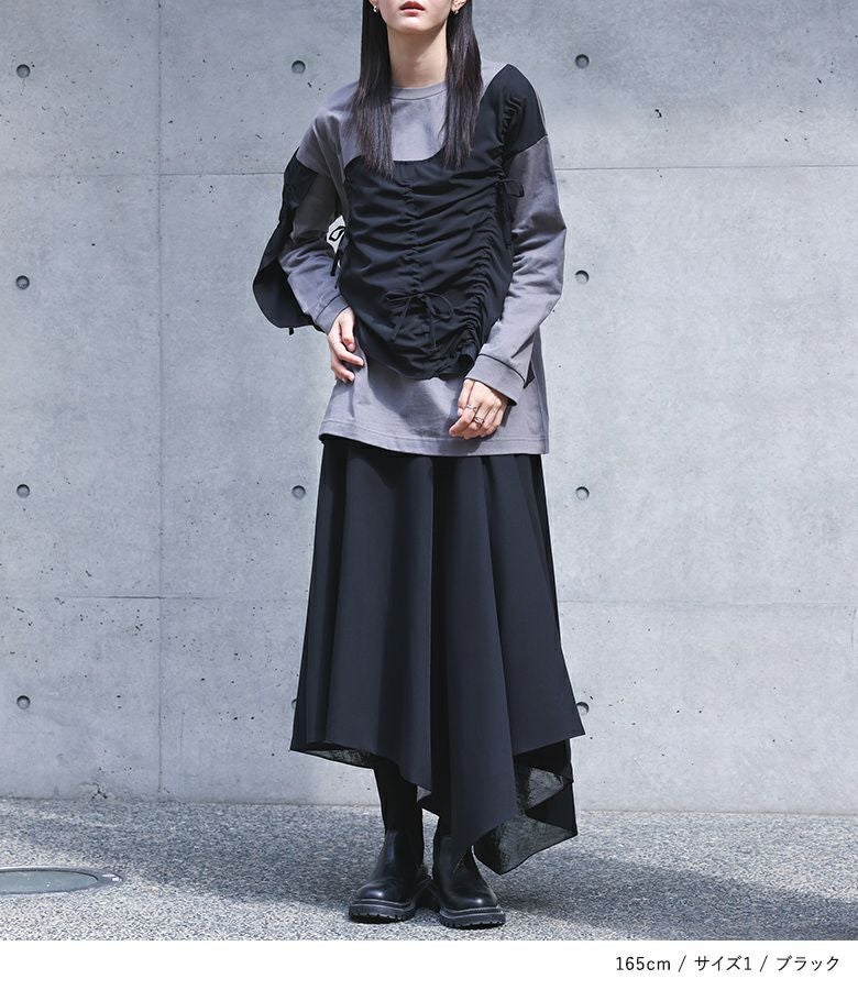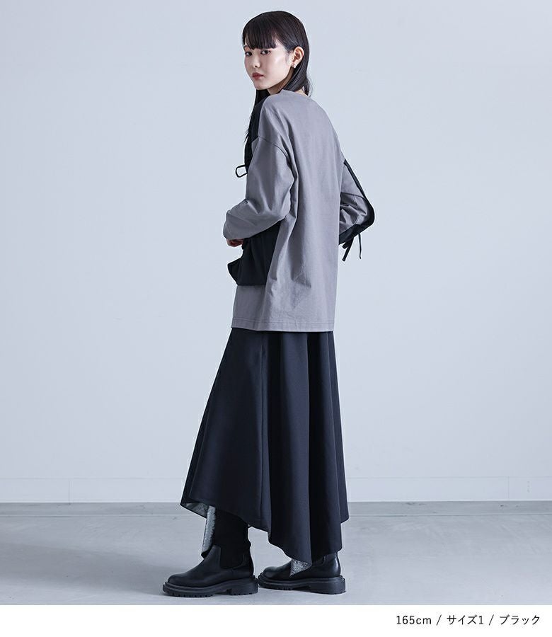 【普段着用】 Tops: S/M Bottoms: M | 【1】 着丈(ウエスト穿き):ふくらはぎが隠れる位 ウエスト:ジャスト ヒップ:ゆったり 太もも周り:ゆったり 全体:ゆったり