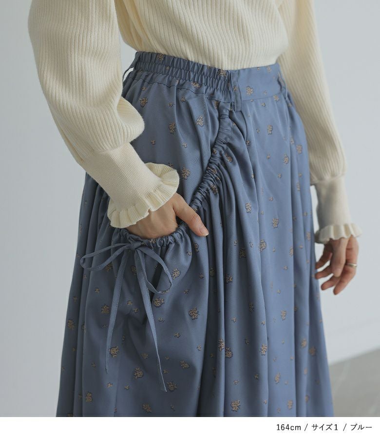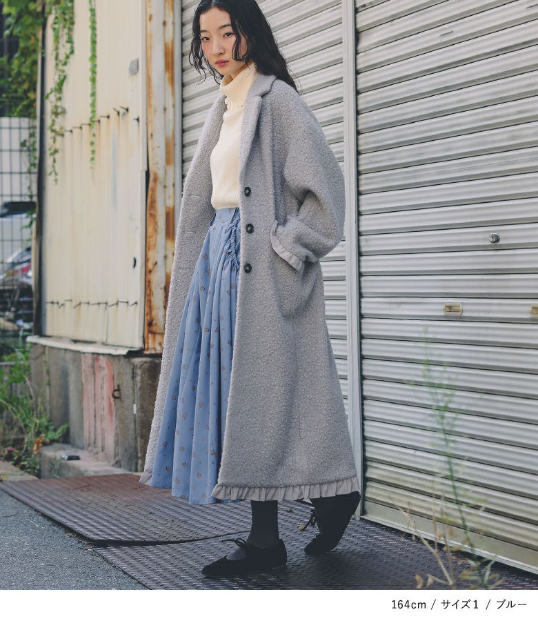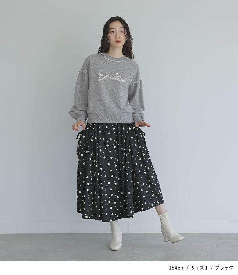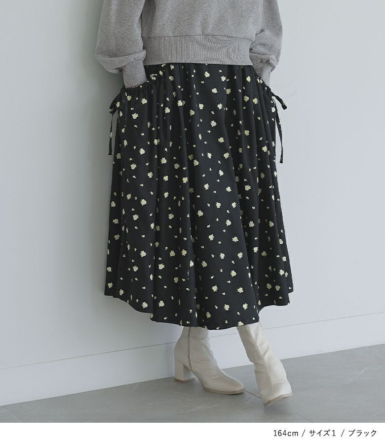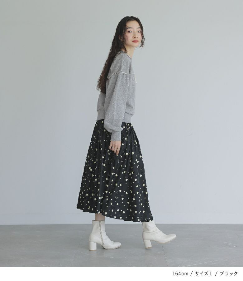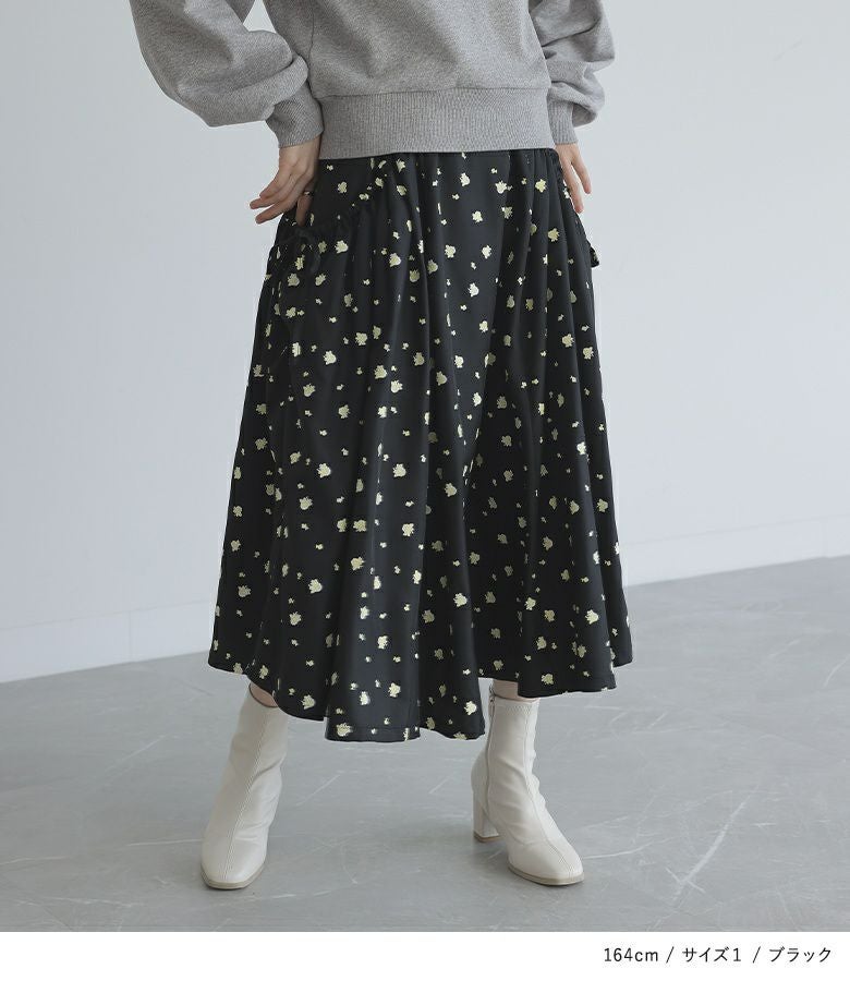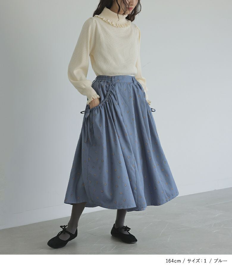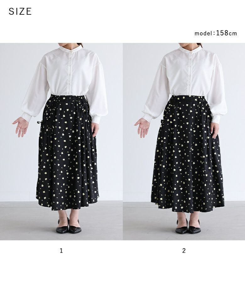 【普段着用】 Tops: M Bottoms: M | 【1】 着丈(ウエスト穿き):ふくらはぎが隠れる位 ウエスト:ジャスト ヒップ:ゆったり 太もも周り:ゆったり 全体:スッキリ