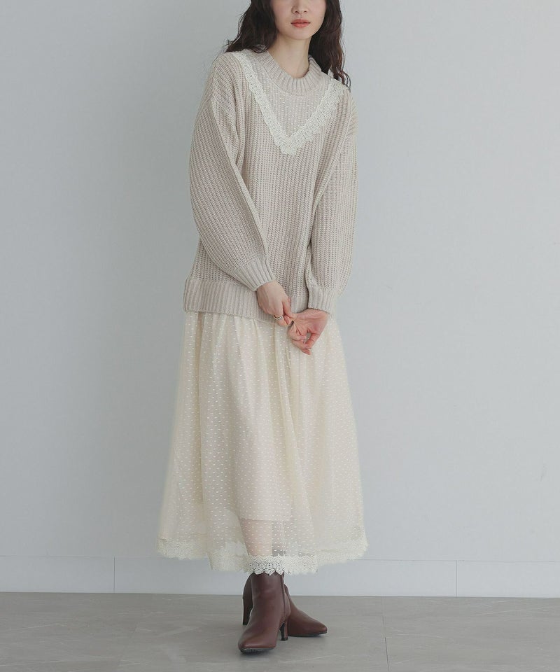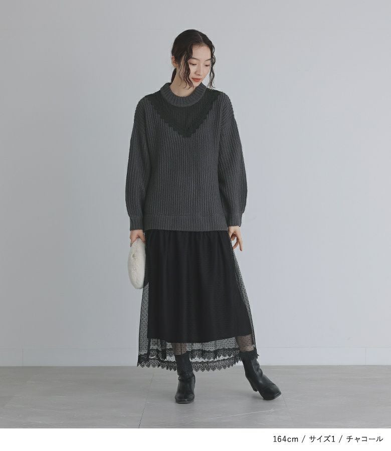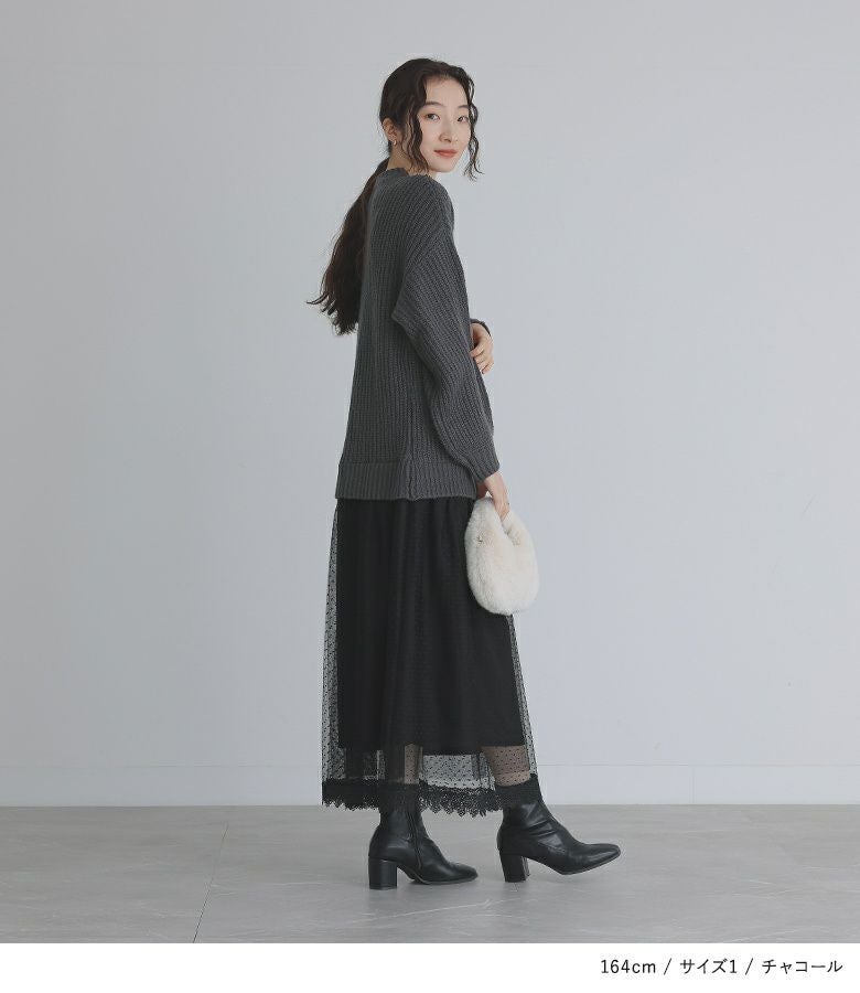 【普段着用】 Tops: L/LL Bottoms: L/LL | 【1】 袖丈:手の甲が隠れる位 着丈:くるぶし上15cm位 腕周り:ややゆったり バスト:ジャスト ウエスト:ジャスト ヒップ:ややゆったり 全体:スッキリ