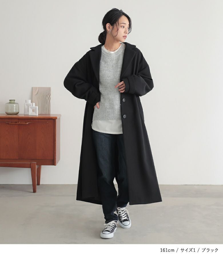 着丈は長すぎずちょうどよいですが、全体的にシルエットが大きく見えました。