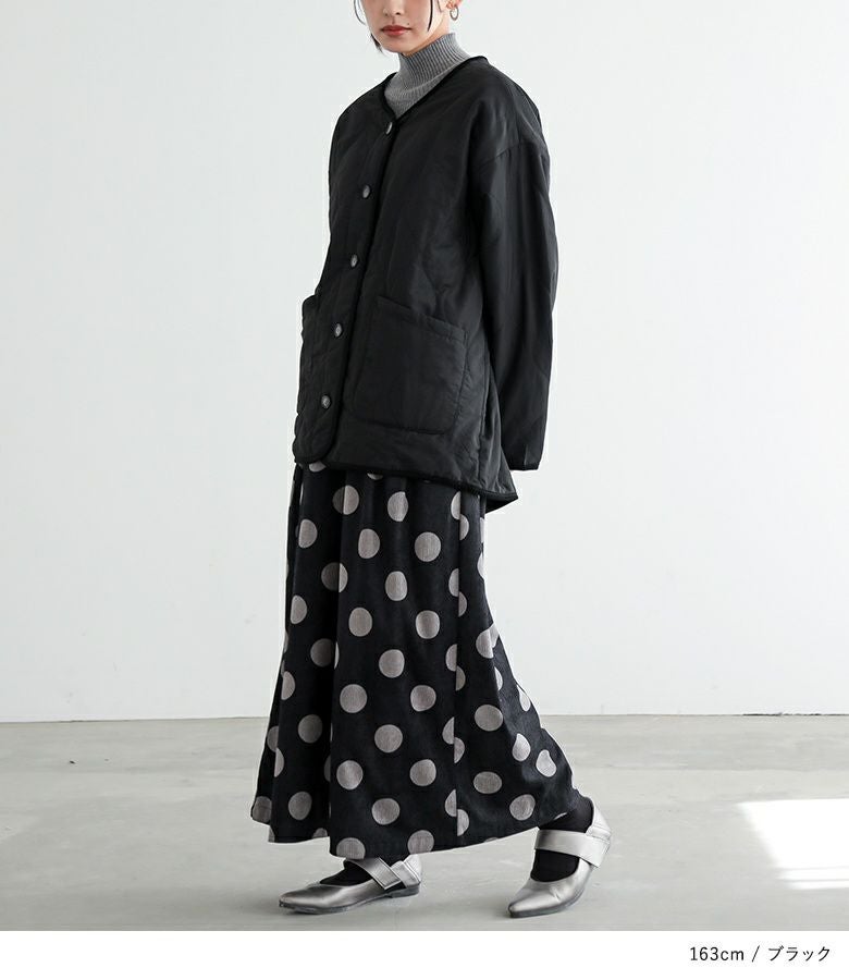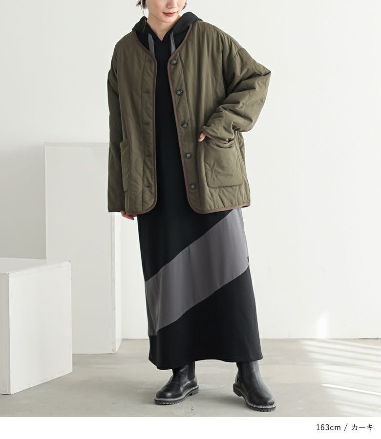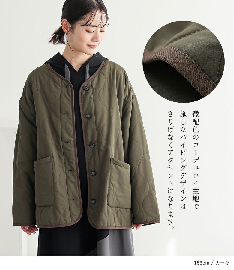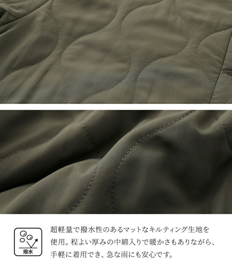 持ち運びしやすい超軽量のミディアム丈キルティングコート。