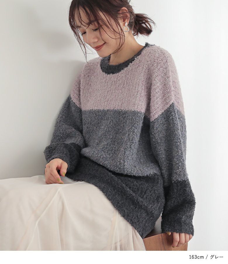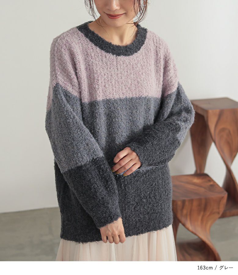 『n'OrLABELブークレ配色ニット』