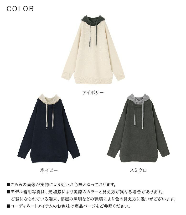 『配色フードニットパーカー』