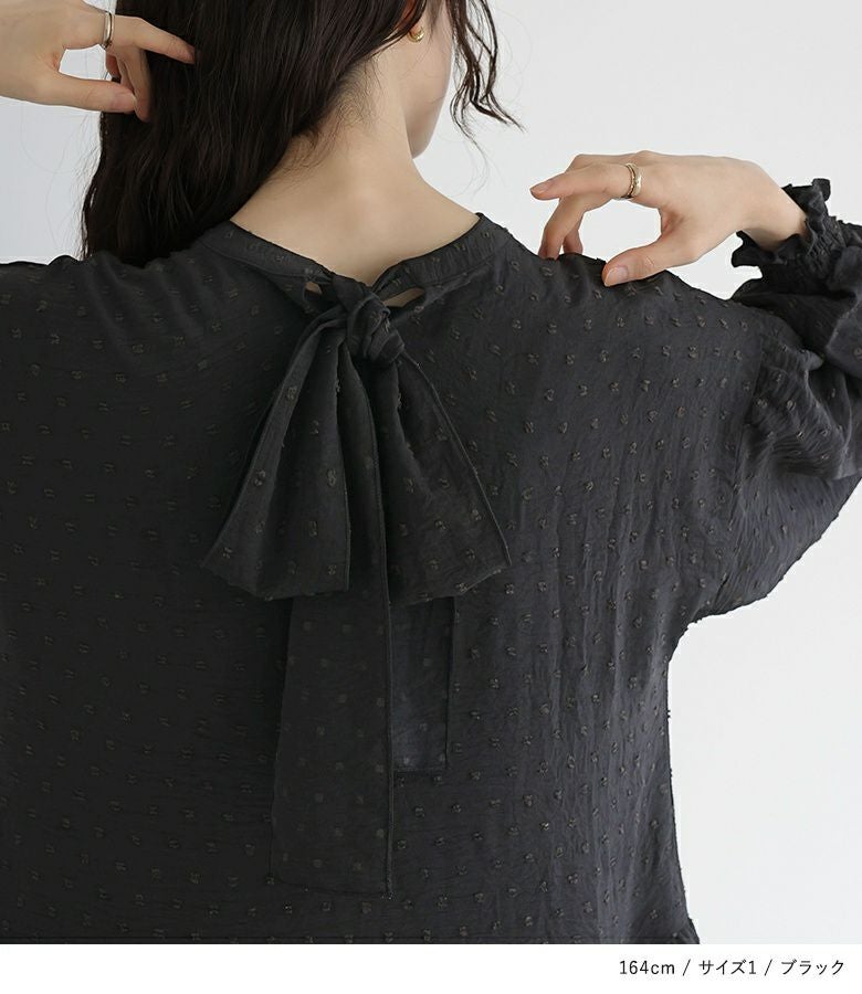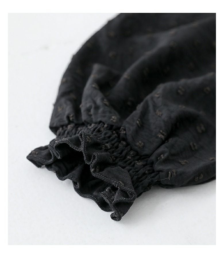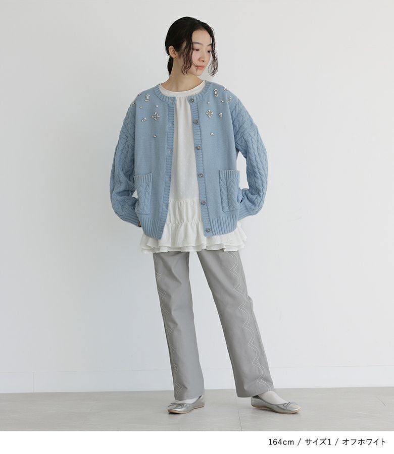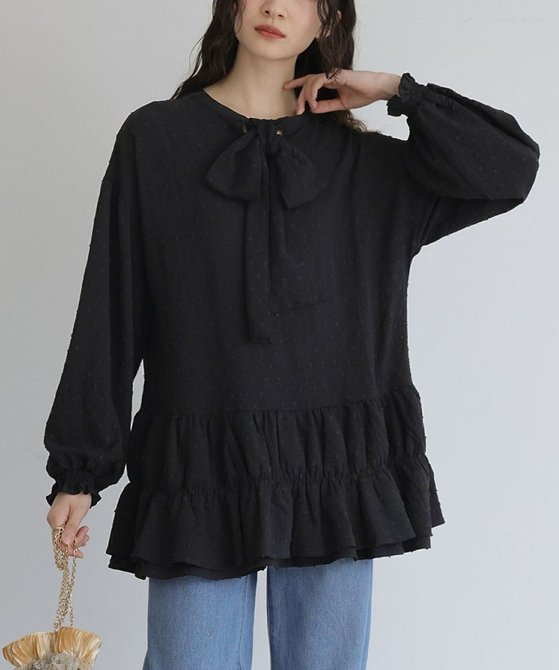 袖と裾のフリルが可愛く、着丈が長めなので体型カバーもできそうです。
