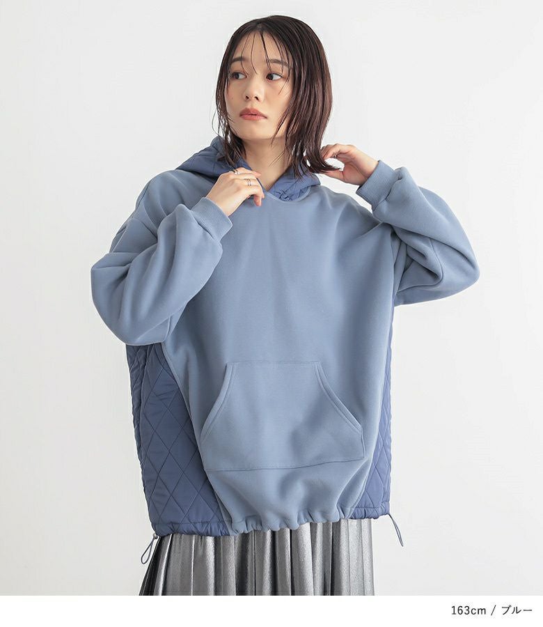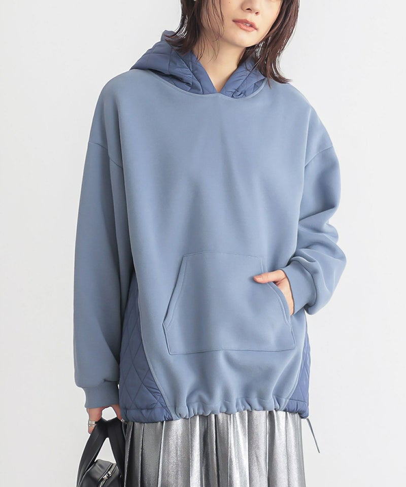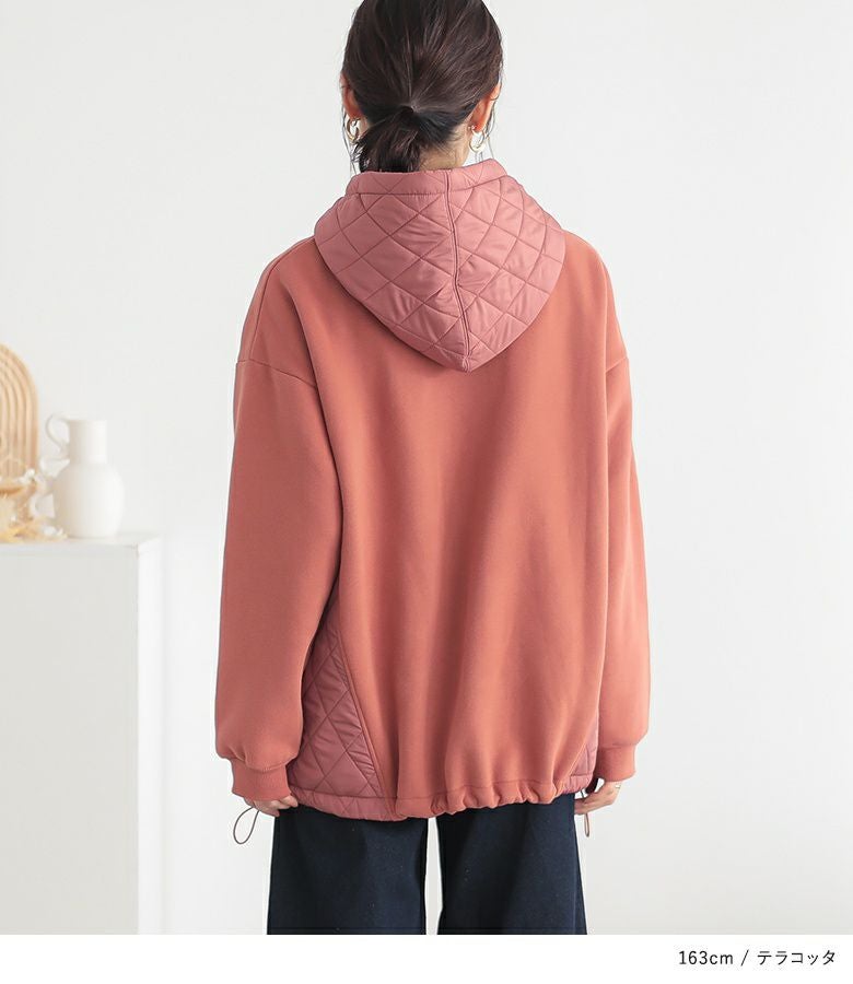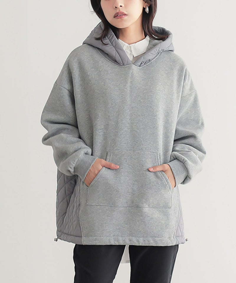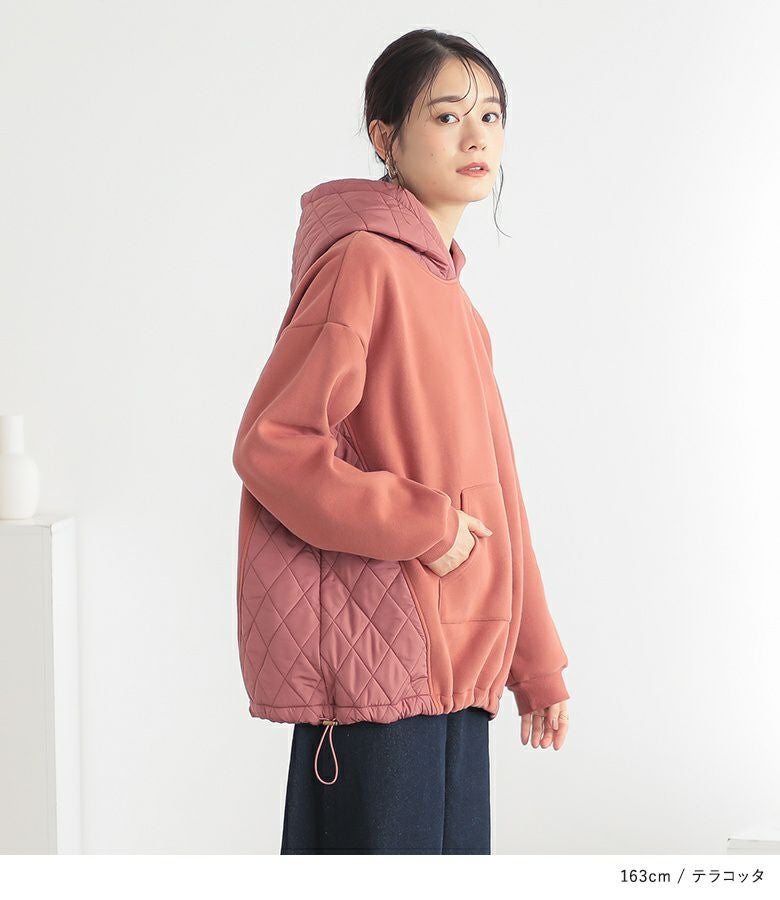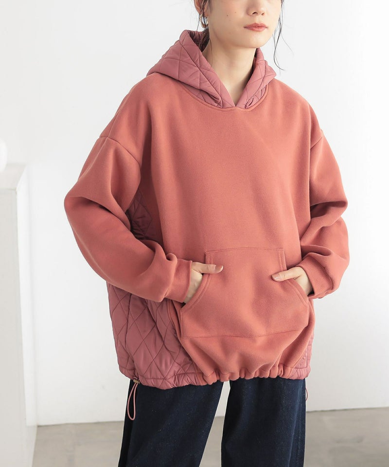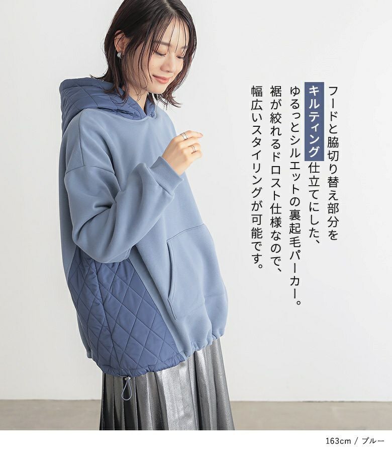 ゆるっとシルエットのキルティング切替デザイン裏起毛パーカー。
