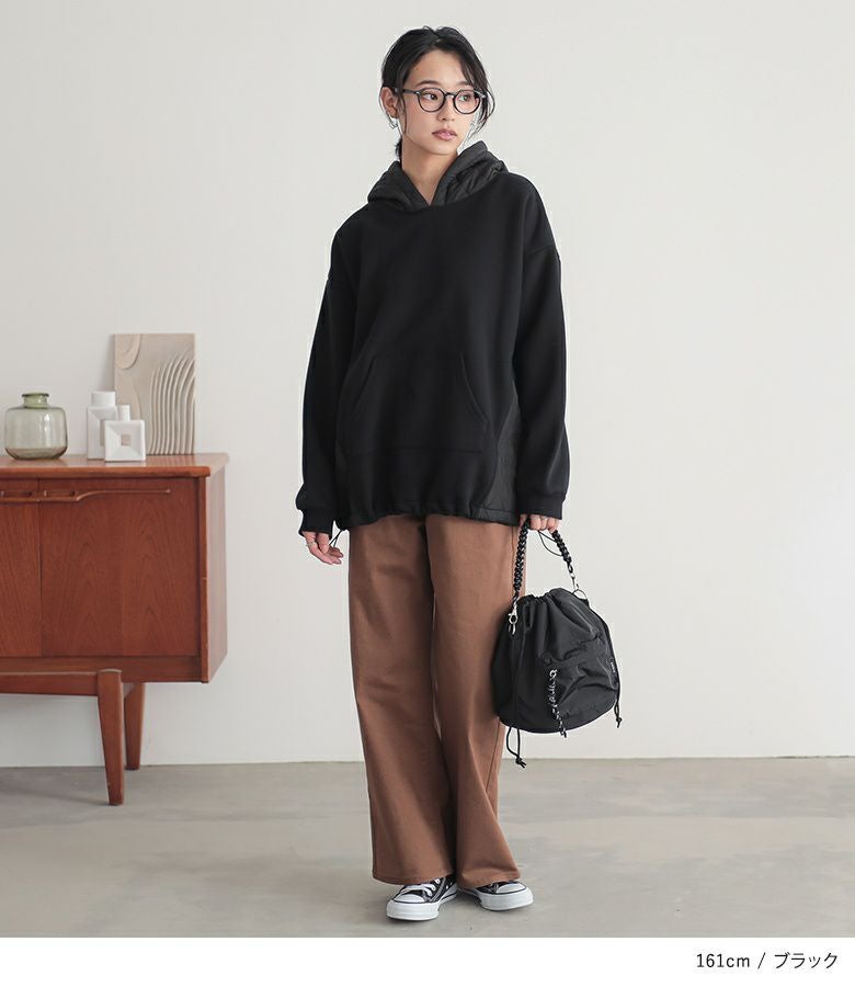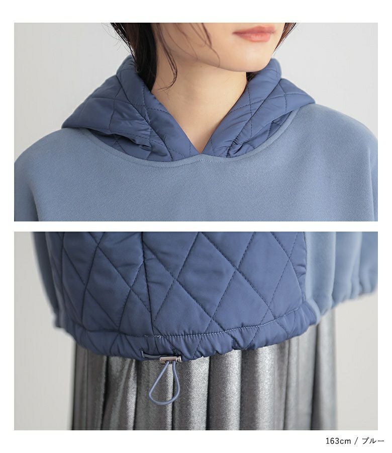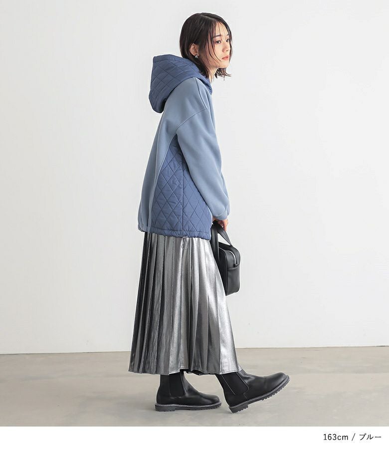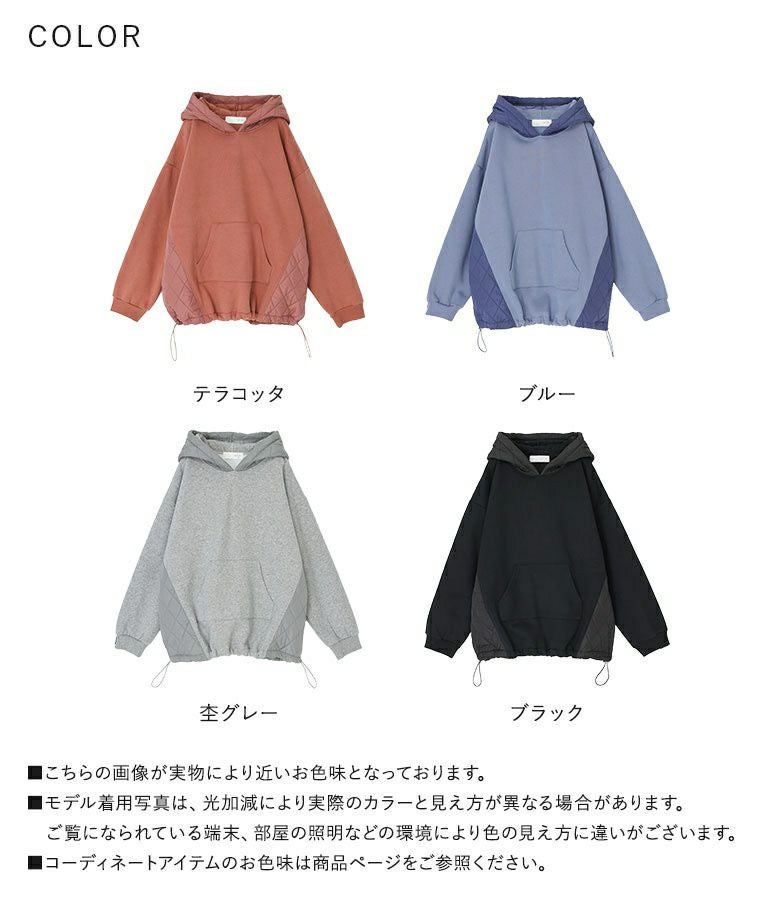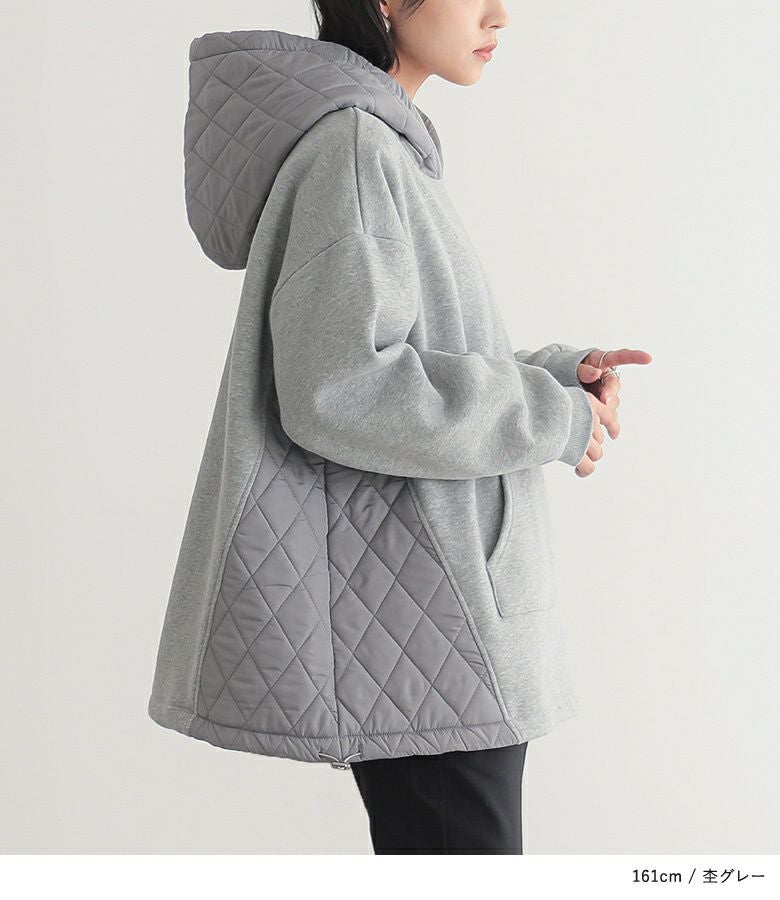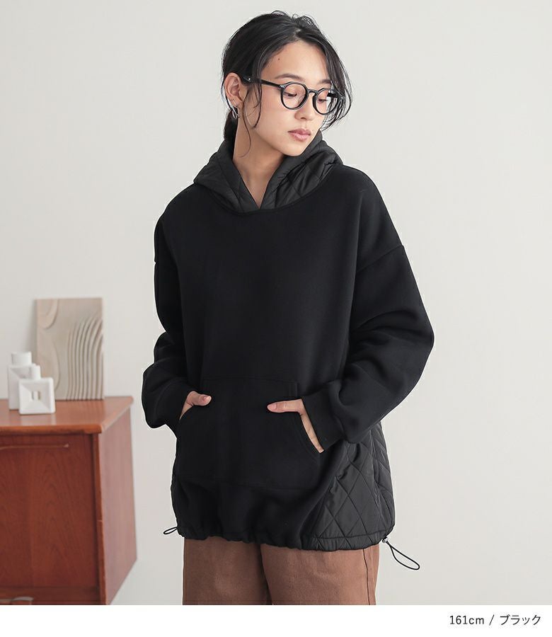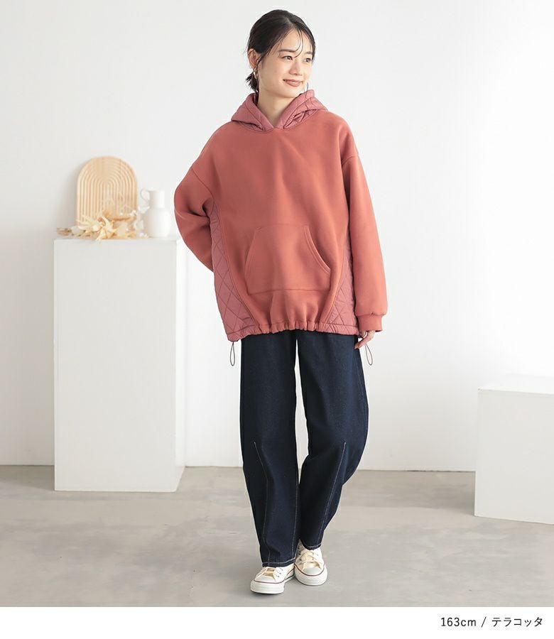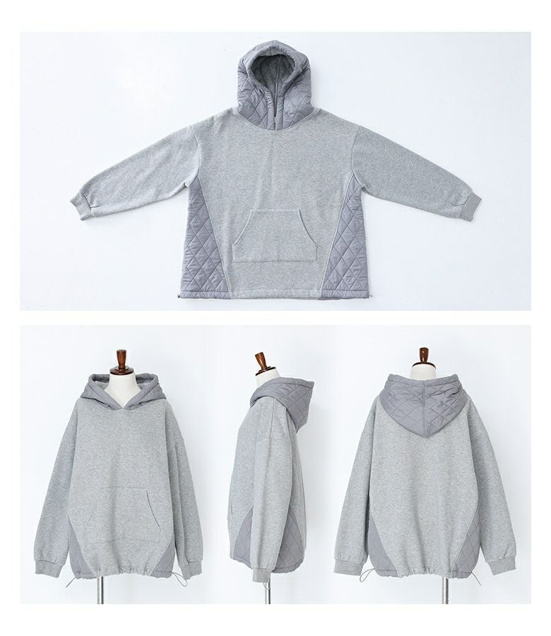 ゆるっとシルエットのキルティング切替デザイン裏起毛パーカー。