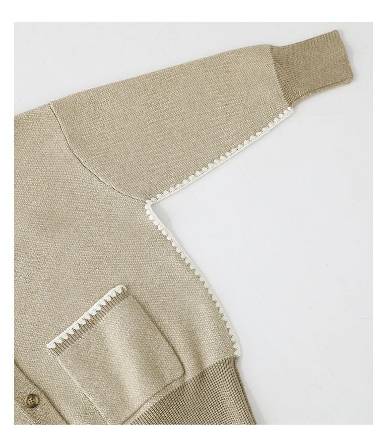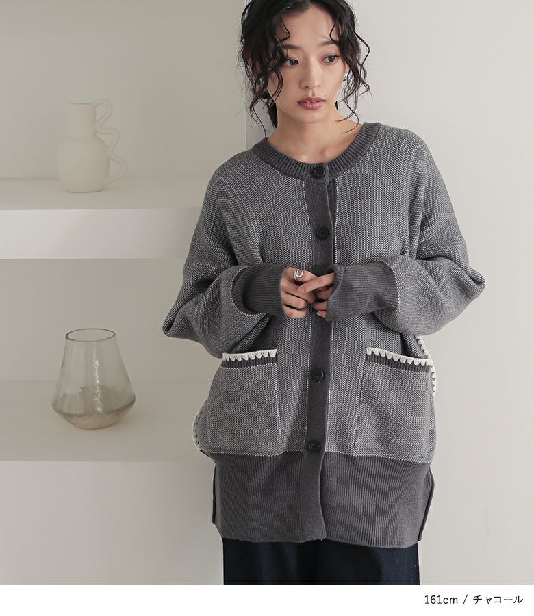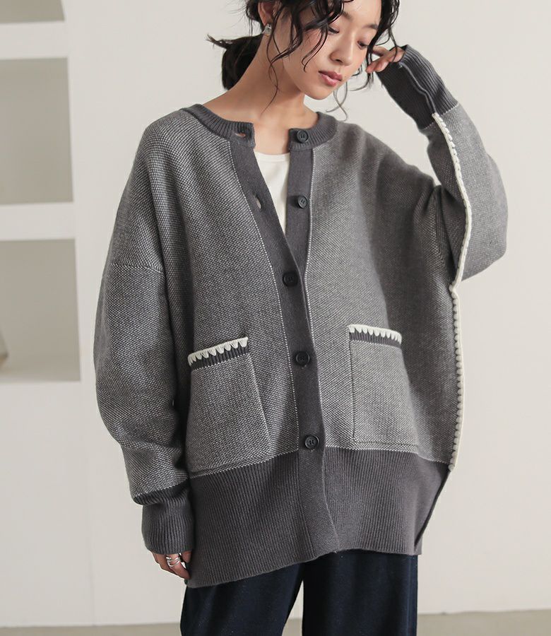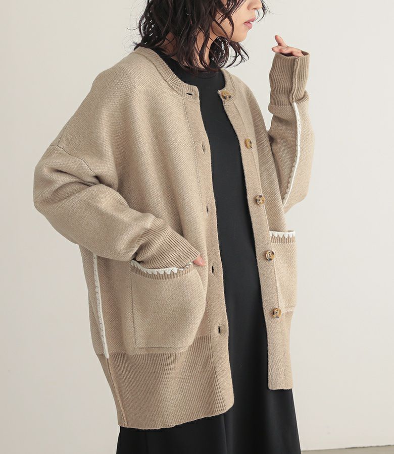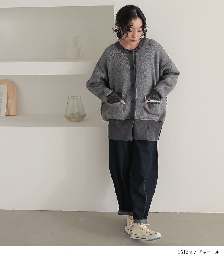 配色飾りステッチがポイントのジャカードニットカーディガン。
