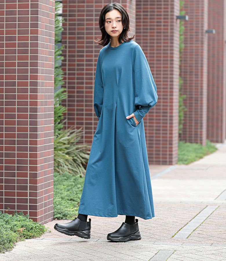 全体的に少し大きく歩くと足が動きますが、かかとが抜けるということはありませんでした。厚めの靴下を履く方は、程よいゆとりになるかと思います。