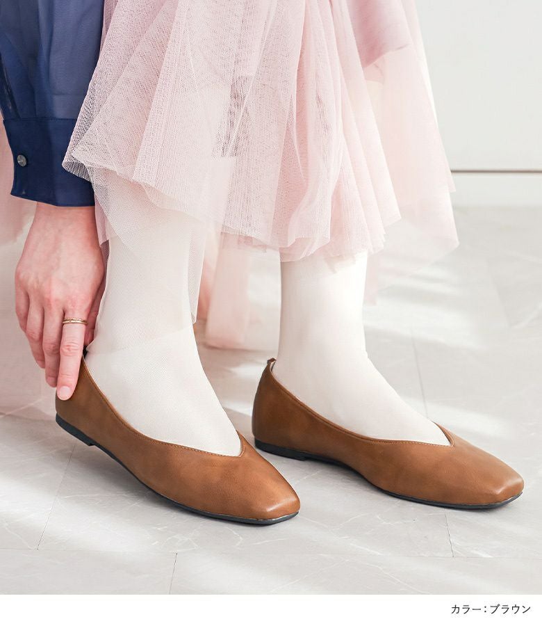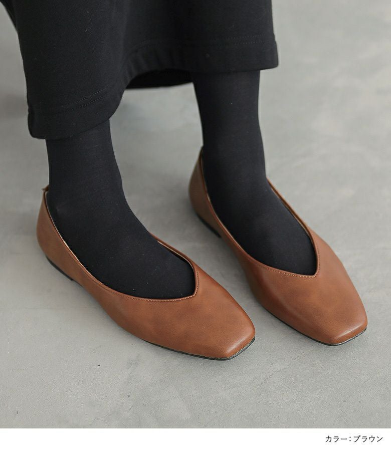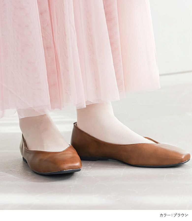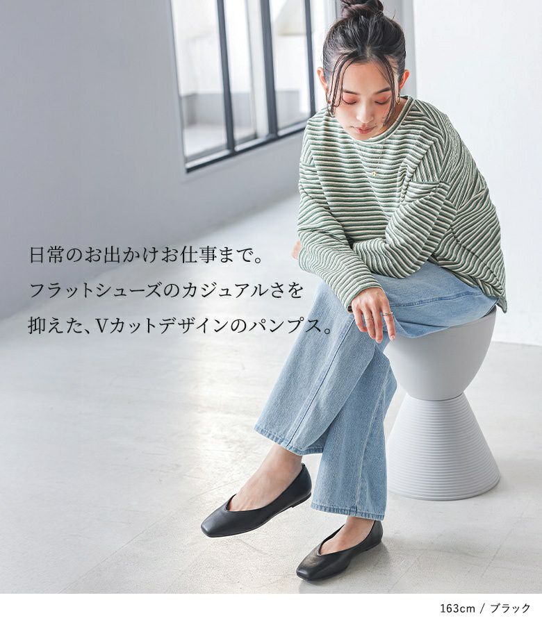 選べるM L LLサイズ展開!Vカットで甲すっきり見せのスクエアトゥパンプス。
