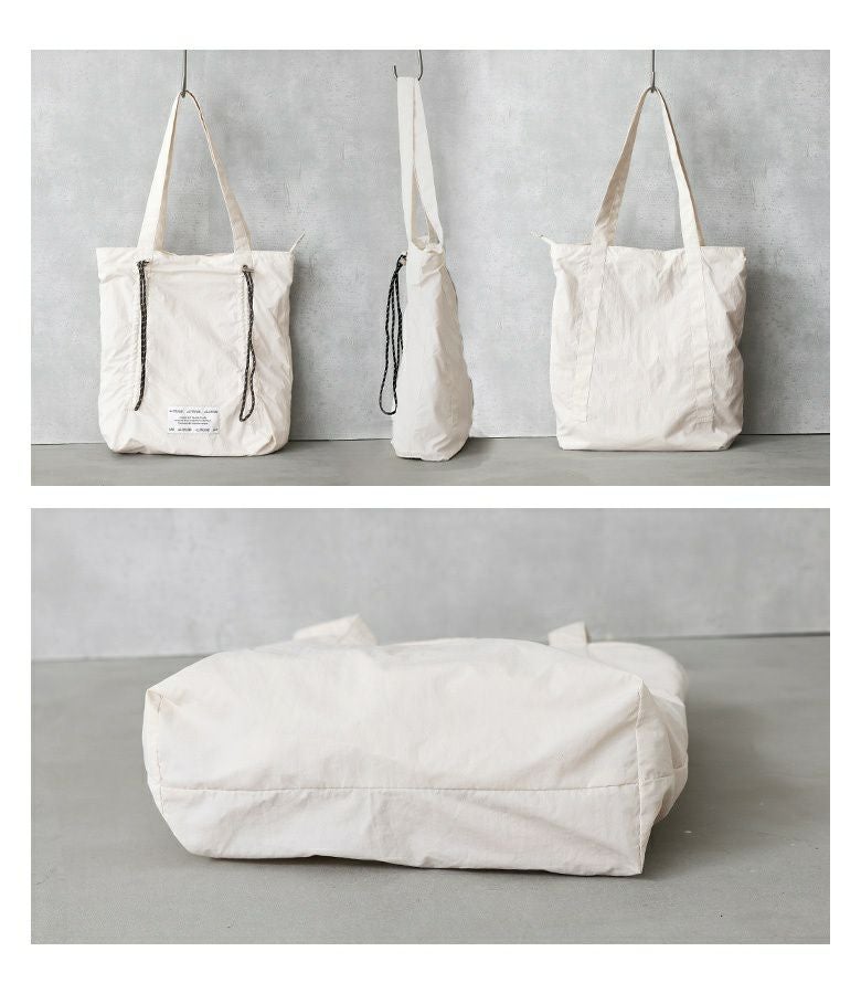 A4がすんなり収まるサイズで軽い素材感のトートバッグ。