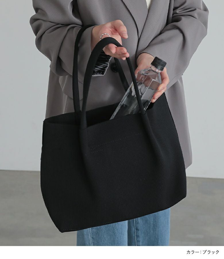 缶ジュース1本分の軽さ、約350gの軽量ニットトートバッグ。