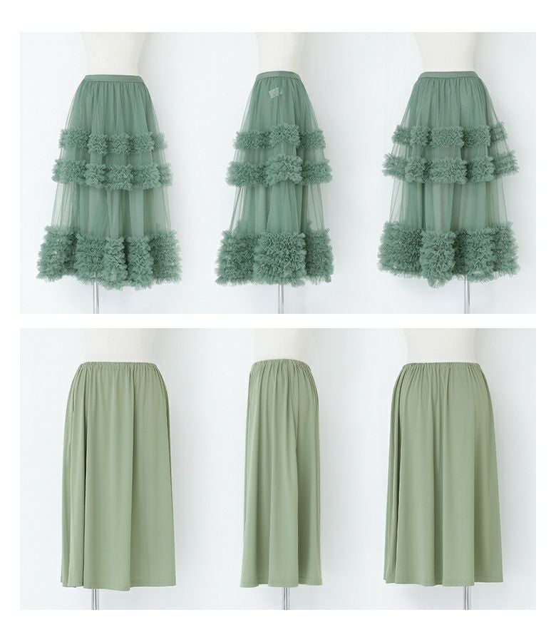 ペチコートが別なので、スカートのみでも、パンツの上に重ねて透かして穿くこともできて便利です。