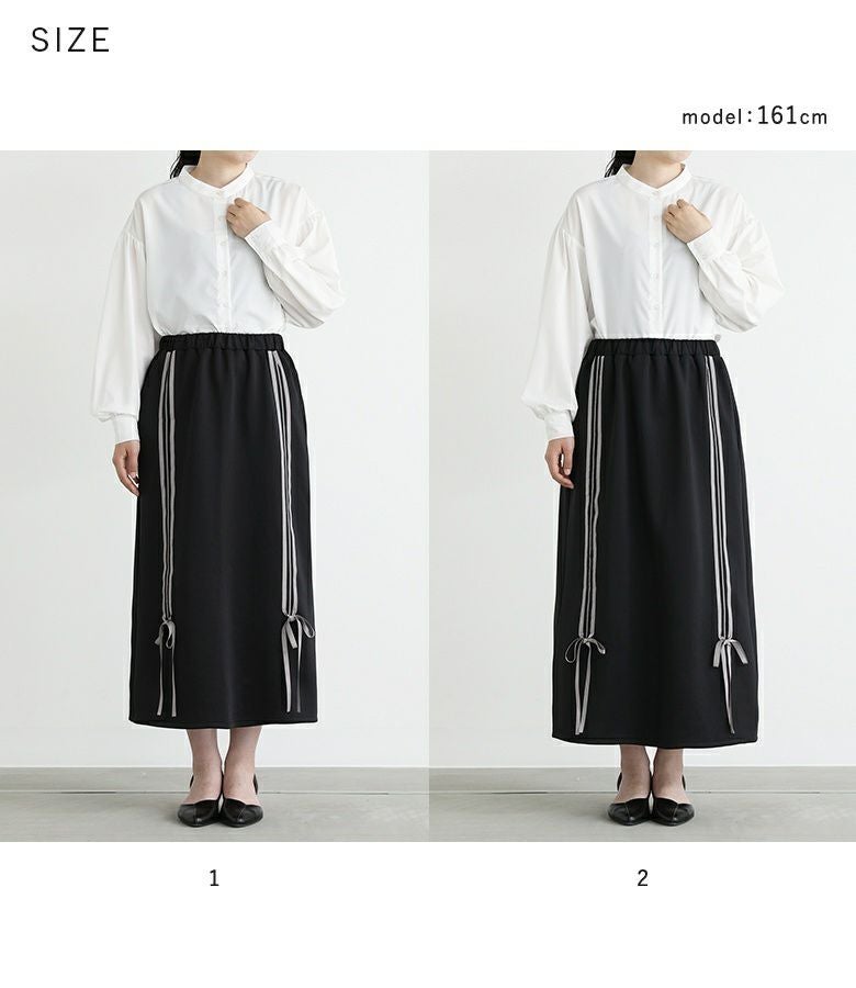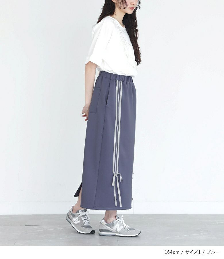 【普段着用】 Tops: S/M Bottoms: S/M | 【1】 着丈(ウエスト穿き):ふくらはぎが隠れる位 ウエスト:ジャスト ヒップ:ややゆったり 太もも周り:ややゆったり 全体:ややゆったり