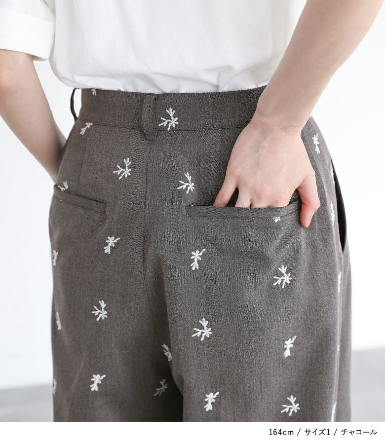 【2】 着丈(ウエスト穿き):かかとから3cm余る位 ウエスト:ゆったり ヒップ:ゆったり 太もも周り:ゆったり 全体:ゆったり