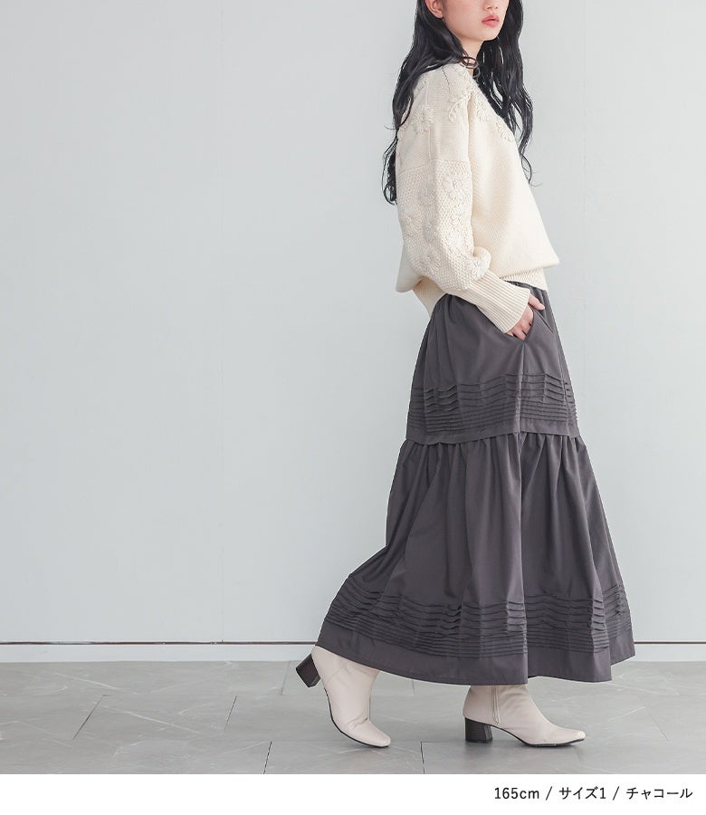 【普段着用】 Tops:M/L Bottoms: M/L | 【1】 着丈(ウエスト穿き):くるぶし上7cm位 ウエスト:ややゆったり ヒップ:ゆったり 太もも周り:ゆったり 全体:ややゆったり