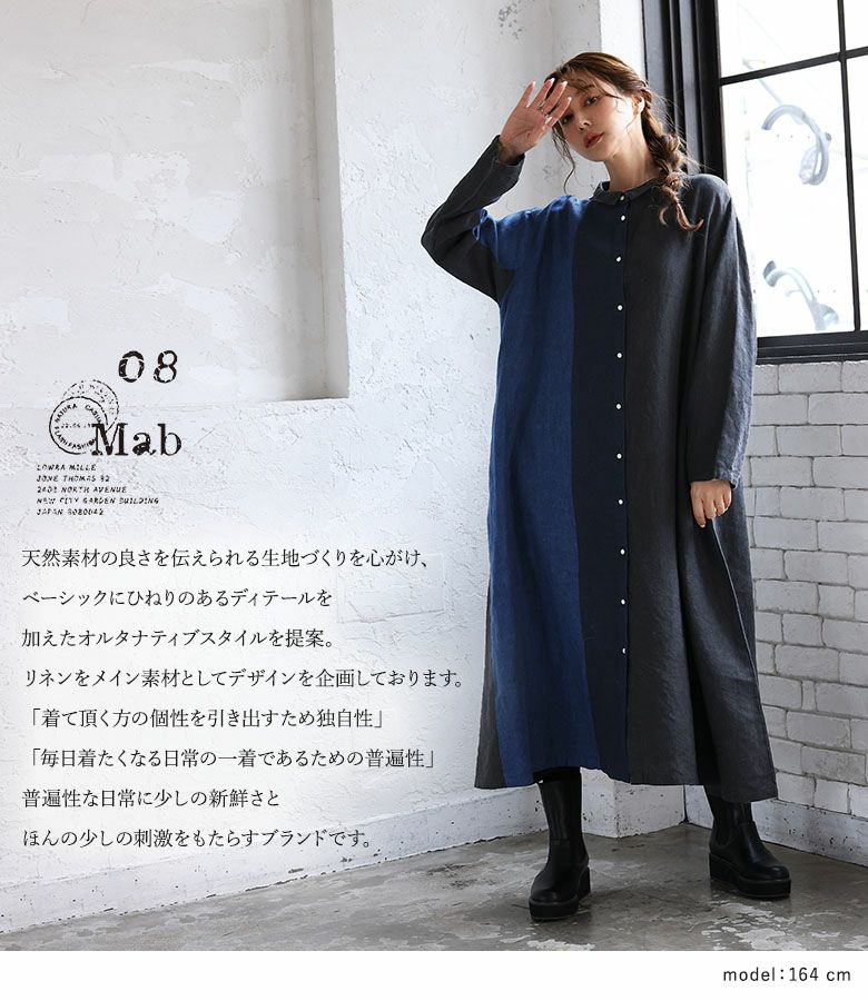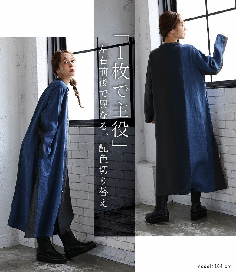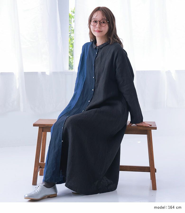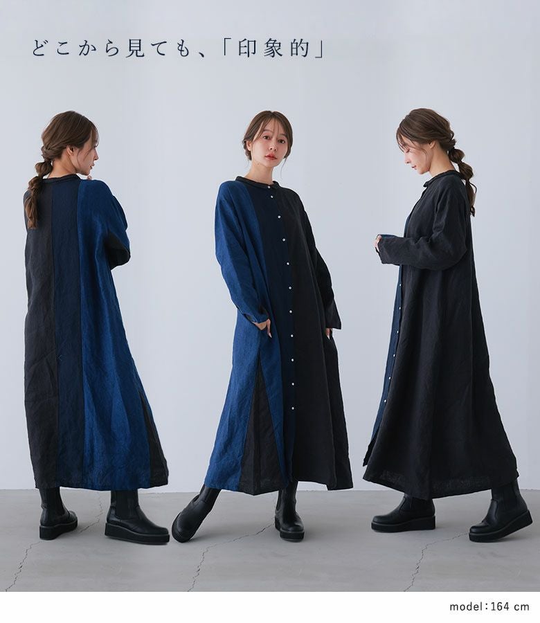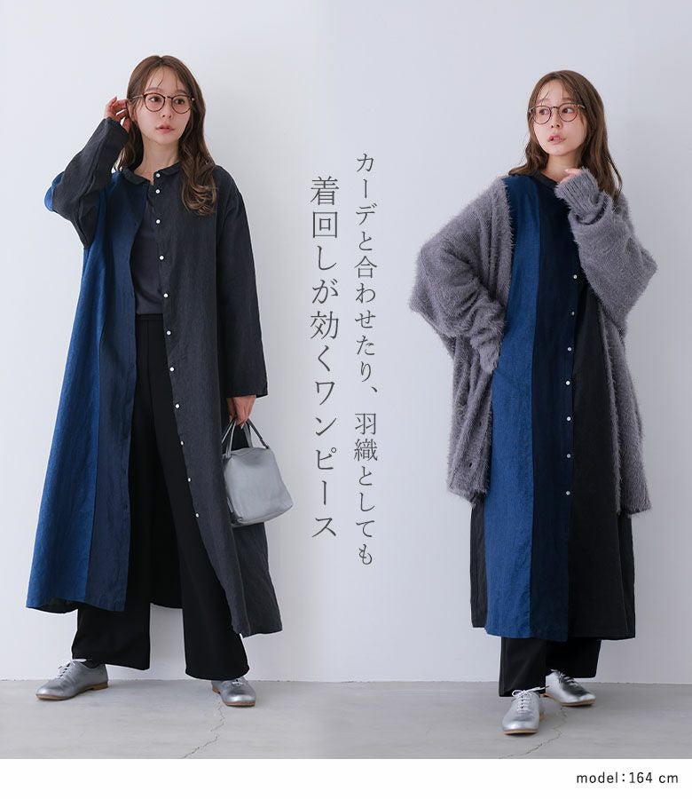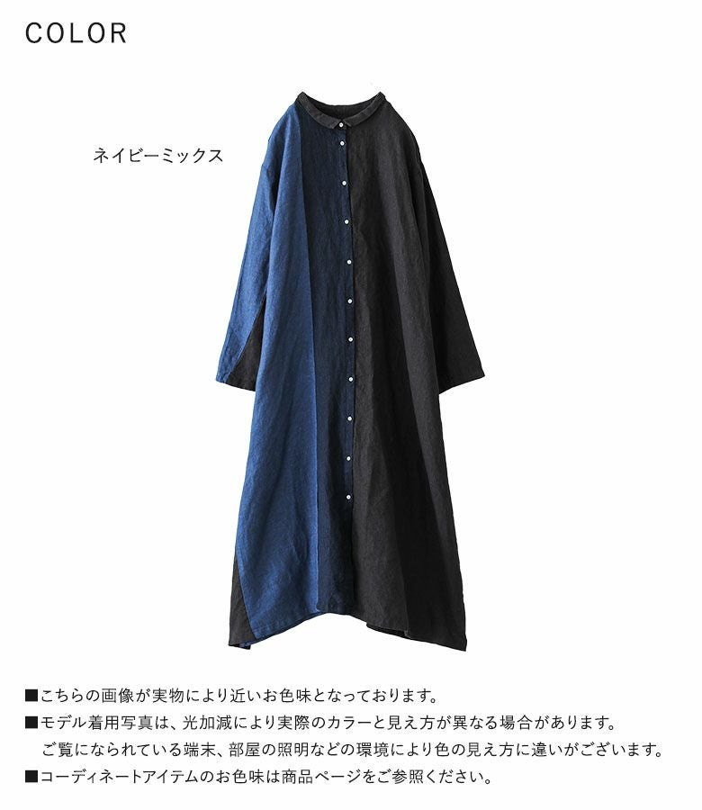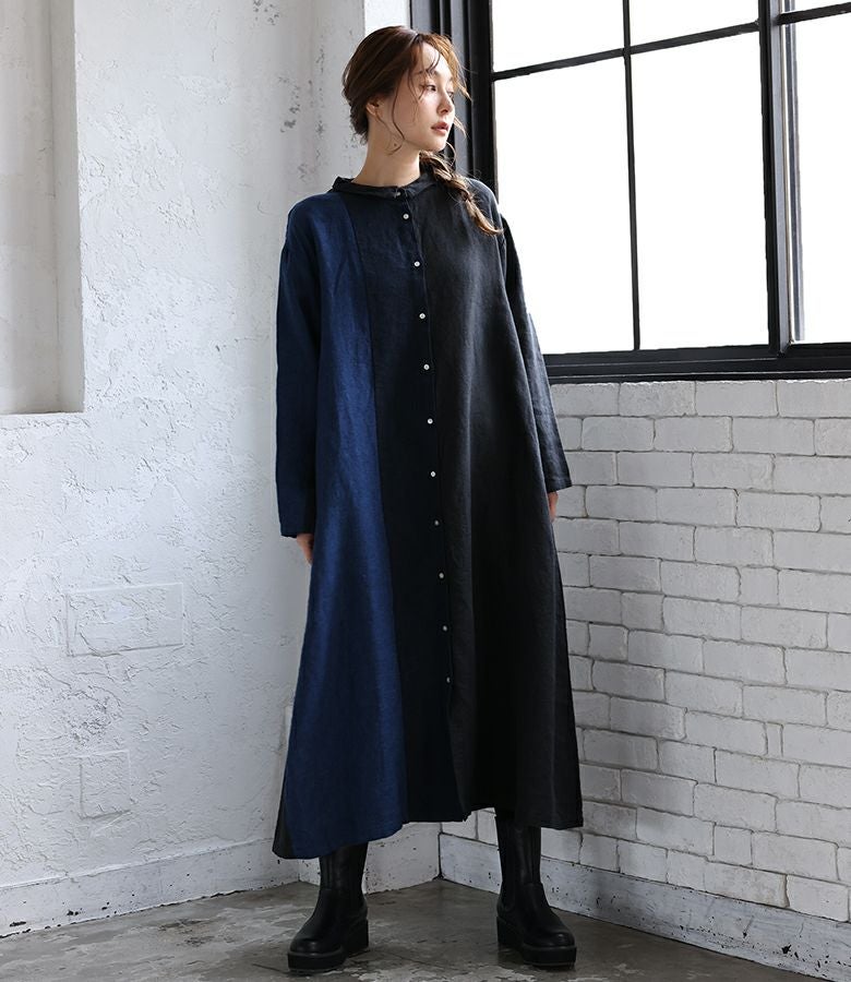 4. 『40%OFFセール★OUKA SELECTリネンチビ襟配色切り替えワンピース』リネンワンピース シャツワンピース レディース ロング丈 長袖 春 秋 冬 リネン100% 麻100% 配色 Aライン ちび襟 切り替え 羽織り シェルボタン 体型カバー 08mab ゼロハチマブ OUKA オウカ※返品交換不可※【メール便不可】【20】