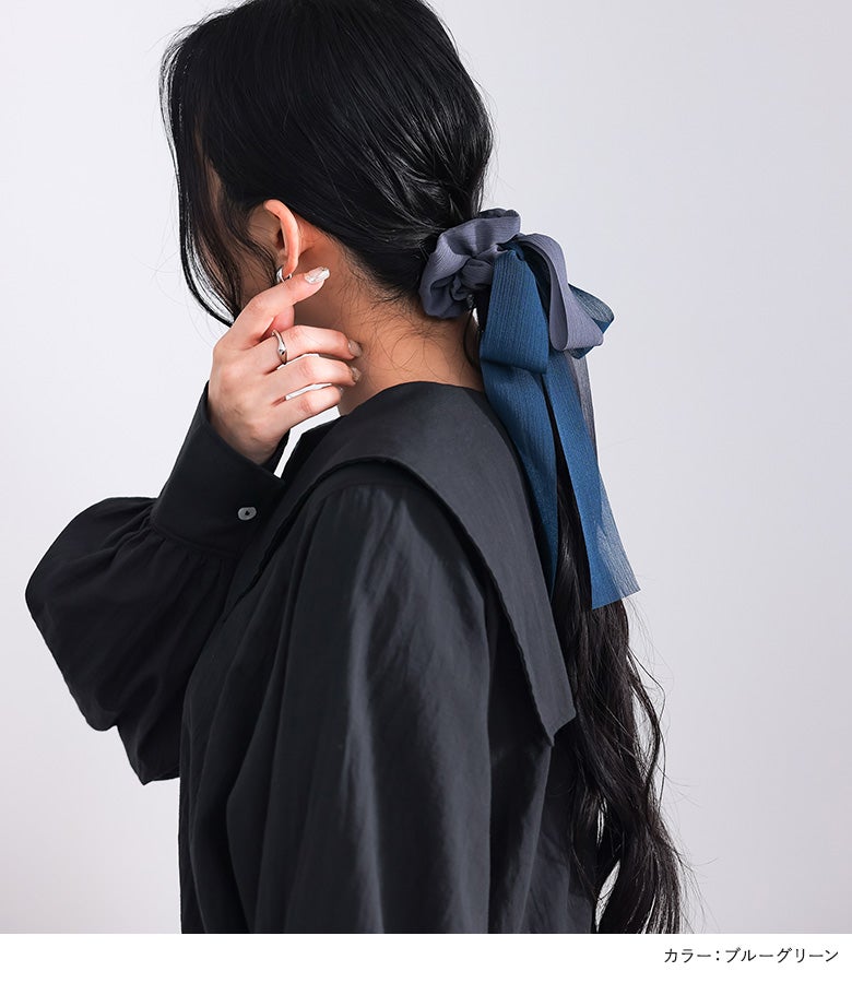 めちゃくちゃ可愛くて ローポニーにつけるとリボンのボリュームてものすごく可愛くなります。 現在ボブでまとめるとちょろんとしか結べませんが リボンに結んだ髪が隠れるので逆に可愛いです! 服装によっては可愛くも大人っぽくもなるシュシュです。 ブルーグリーンを購入しましたが画像よりもグリーン感が少ないですが そこがまた上品で可愛いです。 他のカラーも欲しくなります!