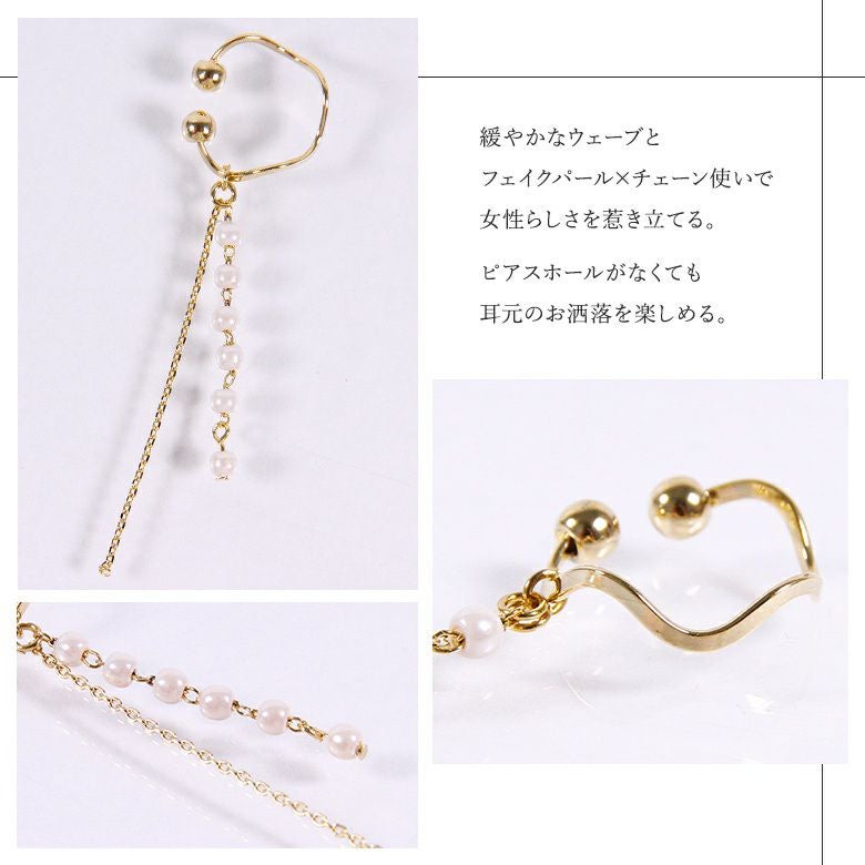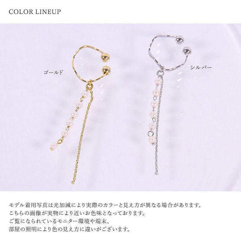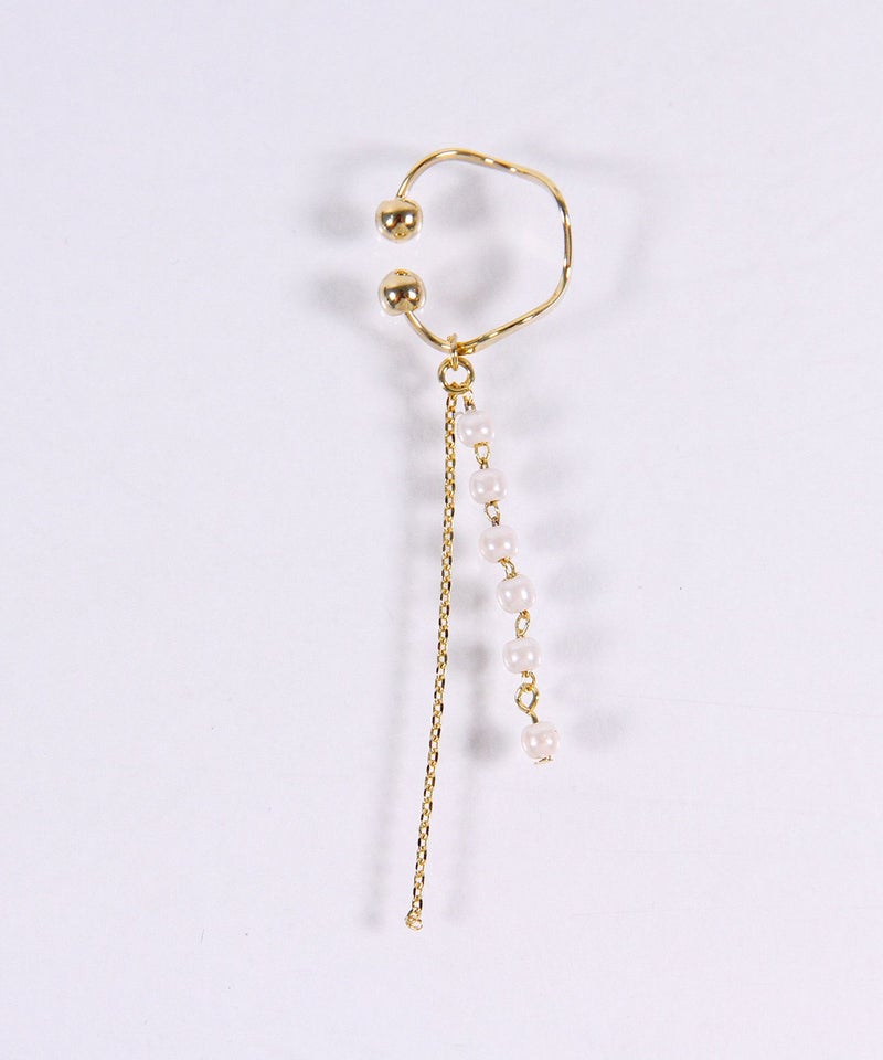 上品な大人の存在感を添える、小粒フェイクパール×チェーンイヤーカフです。