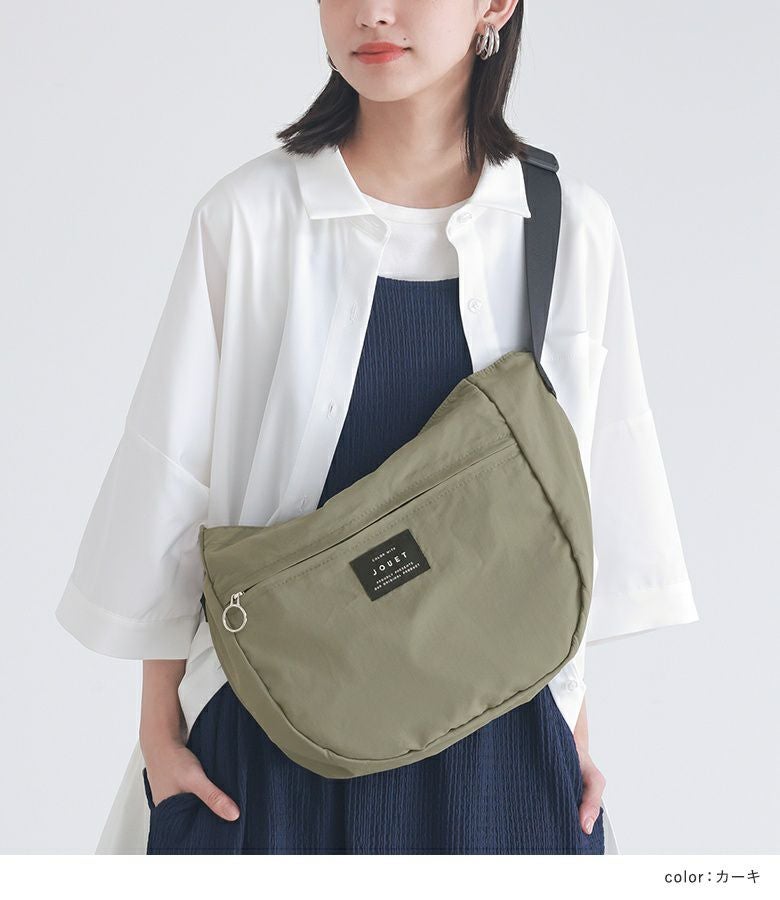 ふわっとした風合いの軽量ショルダーバッグ。広めのマチで、お出かけに必要な荷物がしっかり入る容量です。スーツケースに取り付けられるキャリーオン仕様なのも嬉しいポイント。軽く折りたたんで持ち運べるため、デイリーはもちろん旅行やアウトドアなどでのサブバッグとしても活躍します。