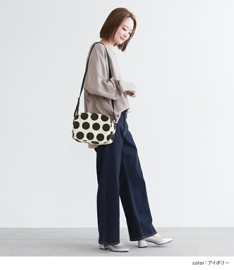 『ドット柄キャンバスショルダーバッグ』